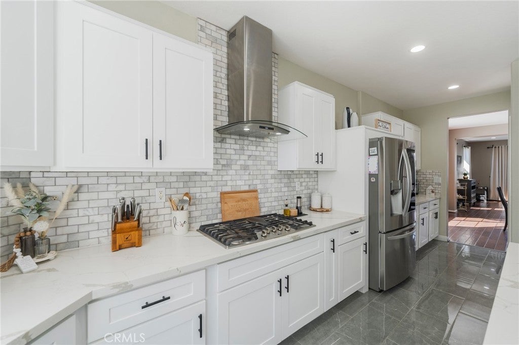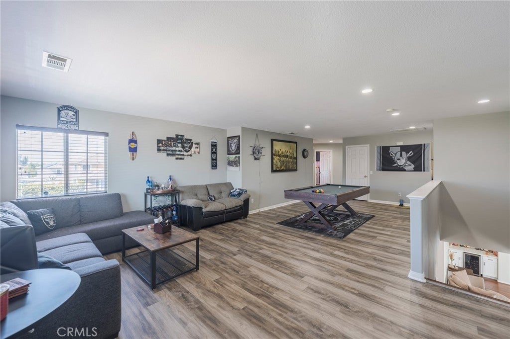Designed for unforgettable gatherings and everyday comfort, where everyday living feels like a getaway, this move in ready South Corona home invites you to slow down and enjoy the moment. Set on a large corner lot, the property offers effortless indoor outdoor flow with a sparkling private pool and spa and expansive yard space made for summer parties, weekend barbecues, and quiet evenings under the lights. The fully remodeled kitchen is the heart of the home, stunning, open, and built for connection, where conversations linger and memories are made. Downstairs living and family rooms provide welcoming spaces to unwind, while the spacious upstairs recreation room serves as a third living area perfect for movie nights, game days, or hosting overnight guests. With four bedrooms and 3.5 bathrooms, there is room to grow, gather, and adapt to every stage of life. A three car garage and a convenient South Corona location near shopping, dining, and commuter access complete a home that balances luxury, comfort, and lifestyle.