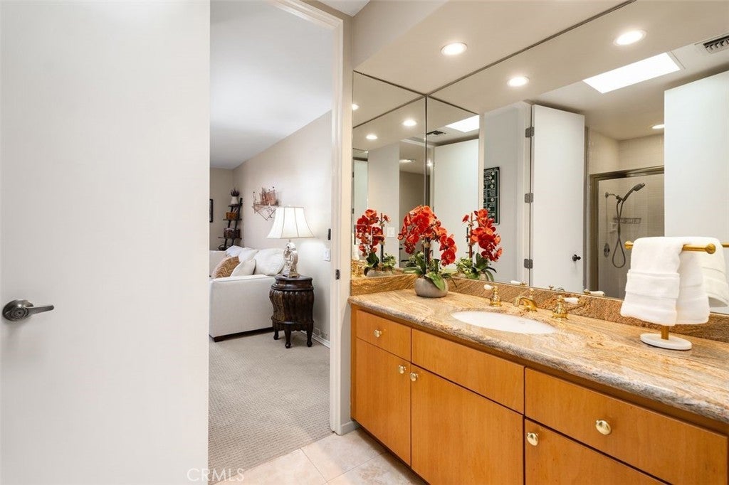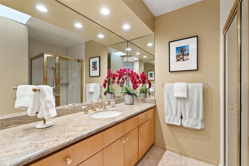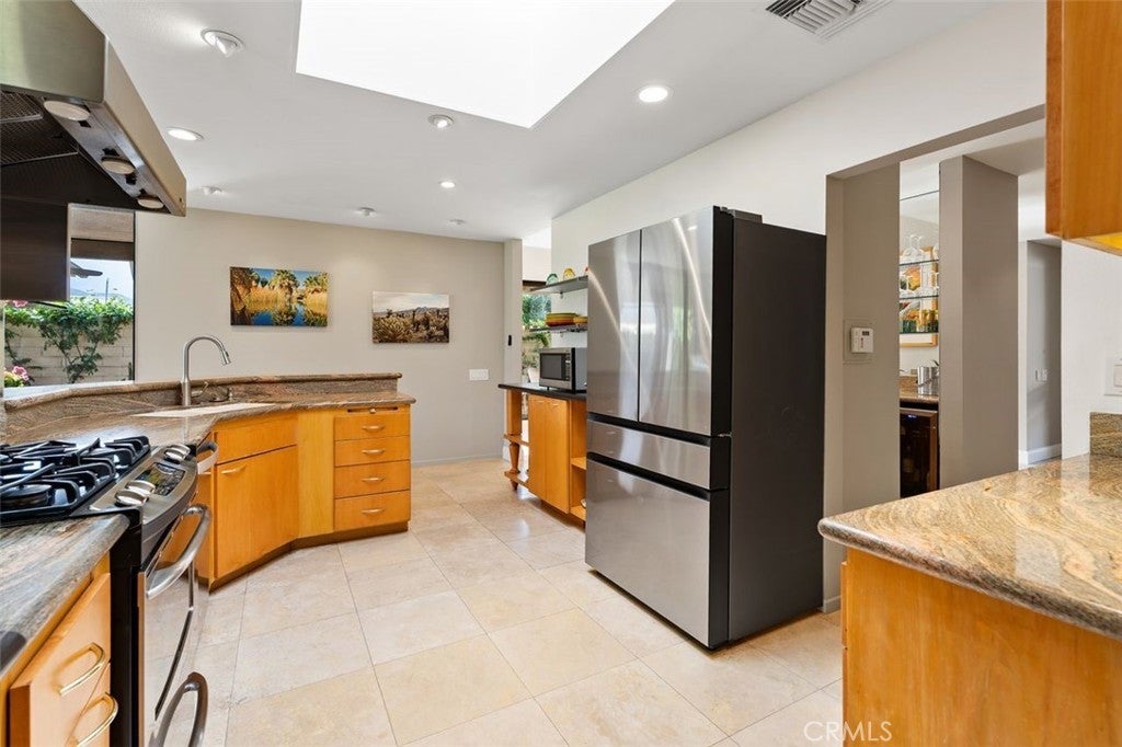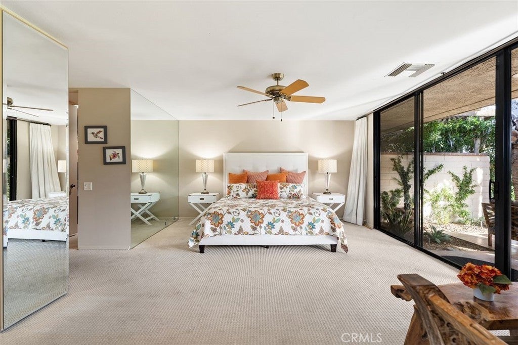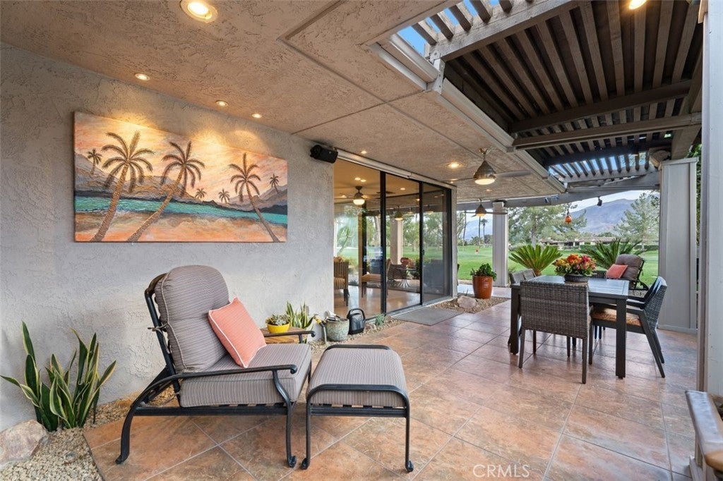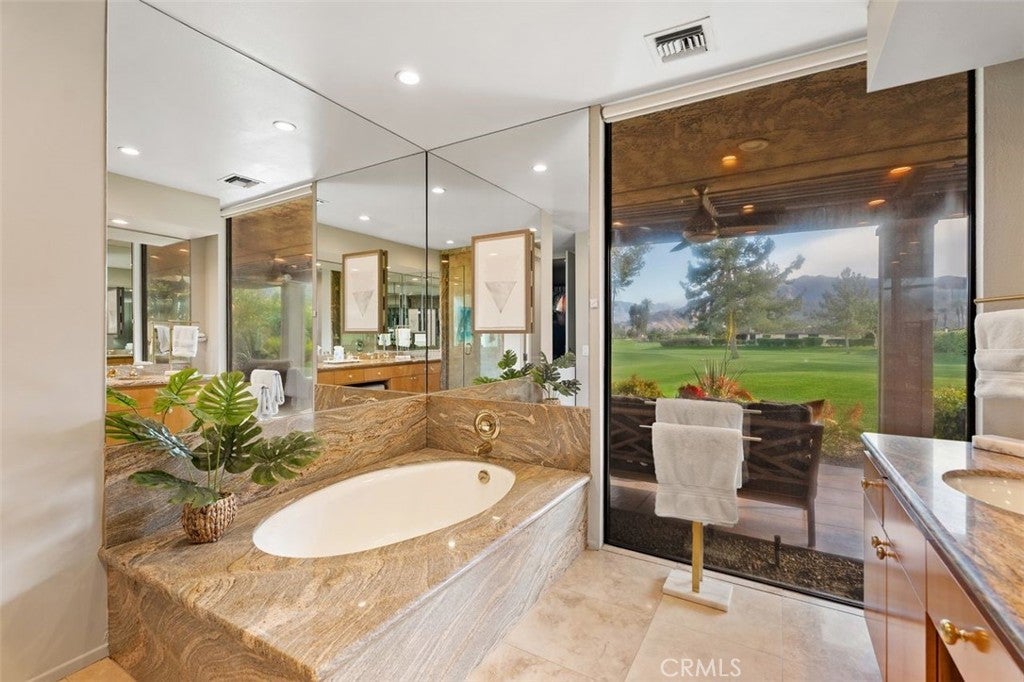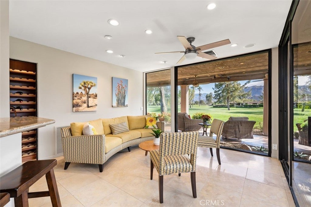 Welcome to your desert dream home in the heart of The Springs Country Club — where luxury, lifestyle, and location come together seamlessly. Perfectly positioned on the prestigious 3rd hole of the championship golf course, this beautifully maintained 3-bedroom, 3-bath residence offers nearly 2,700 square feet of thoughtfully designed living space. With its coveted south-facing orientation, the home captures breathtaking mountain views and abundant natural light throughout the day. A large, tranquil private front courtyard welcomes you with a serene Koi pond, creating an inviting outdoor retreat ideal for morning coffee or evening gatherings. Inside, neutral stone flooring flows through the main living areas, complemented by new contemporary low-pile carpeting in the bedrooms for a fresh, modern feel. Designed for effortless indoor-outdoor living, the spacious layout opens toward the golf course and mountain backdrop. The primary suite is a true sanctuary, featuring two generous walk-in closets and a well-appointed en-suite bath. The kitchen combines style and functionality with slab granite countertops, a gas range, and stainless steel appliances — perfect for both everyday living and entertaining. Additional highlights include a two-car garage plus a dedicated golf cart garage, both finished with durable epoxy flooring. Ideally located directly across from Eisenhower Medical Center and just minutes from shopping, dining, and entertainment at The River at Rancho Mirage and El Paseo, this home offers both privacy and convenience. Residents of The Springs Country Club enjoy a vibrant social scene, premier tennis and pickleball facilities, and a recently updated championship golf course — all within a secure, beautifully maintained community.