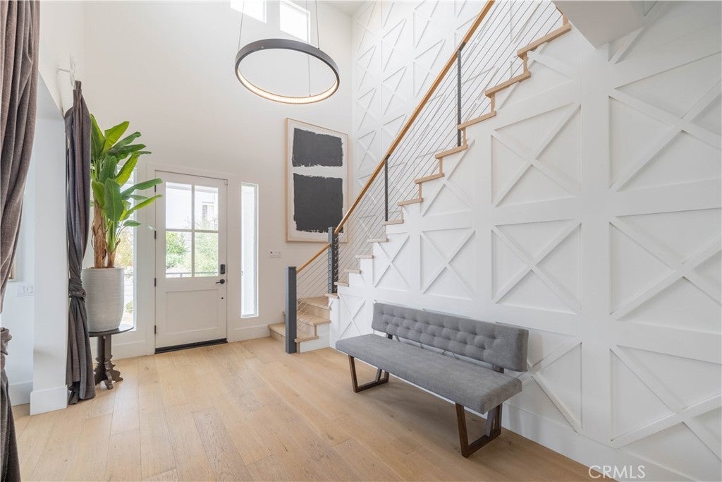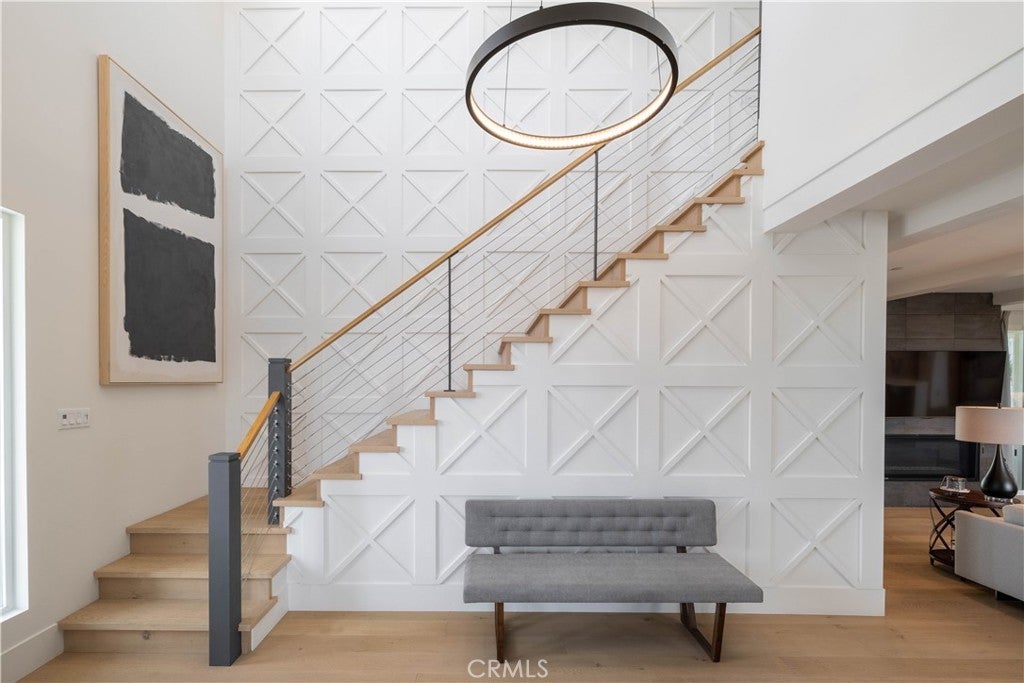 Built in 2021, this beautifully upgraded Modern Farmhouse is located in a GATED hillside community on a quiet cul-de-sac, offering privacy, scenic views, and a thoughtfully designed open-concept floor plan. Featuring 4 bedrooms plus a main floor office (or optional 5th bedroom) and 4 full bathrooms, this home blends modern elegance with everyday comfort. Rich hardwood flooring, designer chandeliers, and custom wainscoting create warmth and sophistication throughout. The chef’s kitchen is the centerpiece of the home, showcasing a massive quartz island, modern wood cabinetry, black appliances, and statement accent lighting. It flows seamlessly into the family room and opens to a spacious entertaining patio with hillside views — ideal for indoor-outdoor California living. The main level includes a flexible office/bedroom and an additional bedroom with full bath, perfect for guests or multi-generational living. Upstairs you’ll find: • A large bonus room with breathtaking views and private deck • A dedicated luxury movie theater room designed for immersive cinematic experiences — perfect for private screenings, game nights, or hosting unforgettable gatherings • Two secondary ensuite bedrooms • Laundry room with an expansive linen closet • Elongated driveway • Large front and back yard The impressive primary suite offers dual vanities, a soaking tub, oversized walk-in shower, TWO PRIMARY WALK-IN CLOSETS, and direct access to a private viewing deck to enjoy peaceful hilltop sunsets. Built to the latest building codes. A rare opportunity to own a newer construction home in an exclusive gated hillside setting — where luxury, comfort, and lifestyle come together.