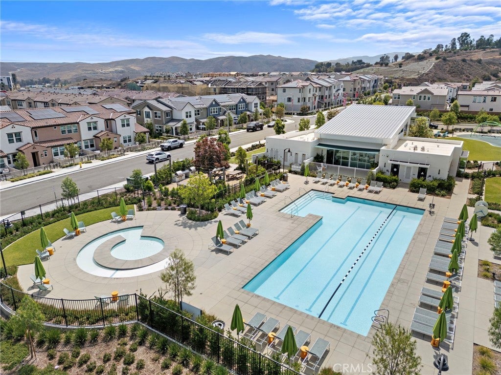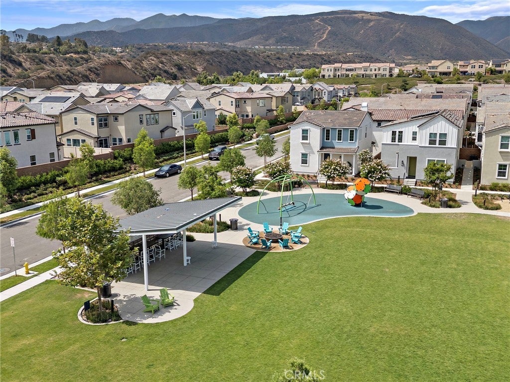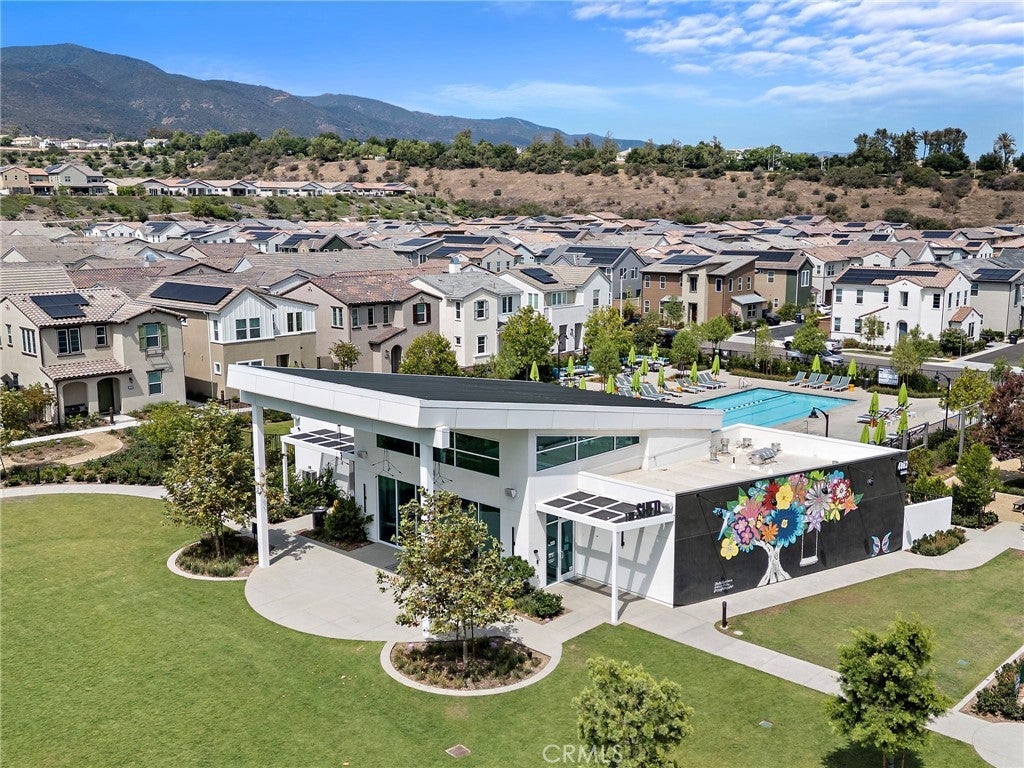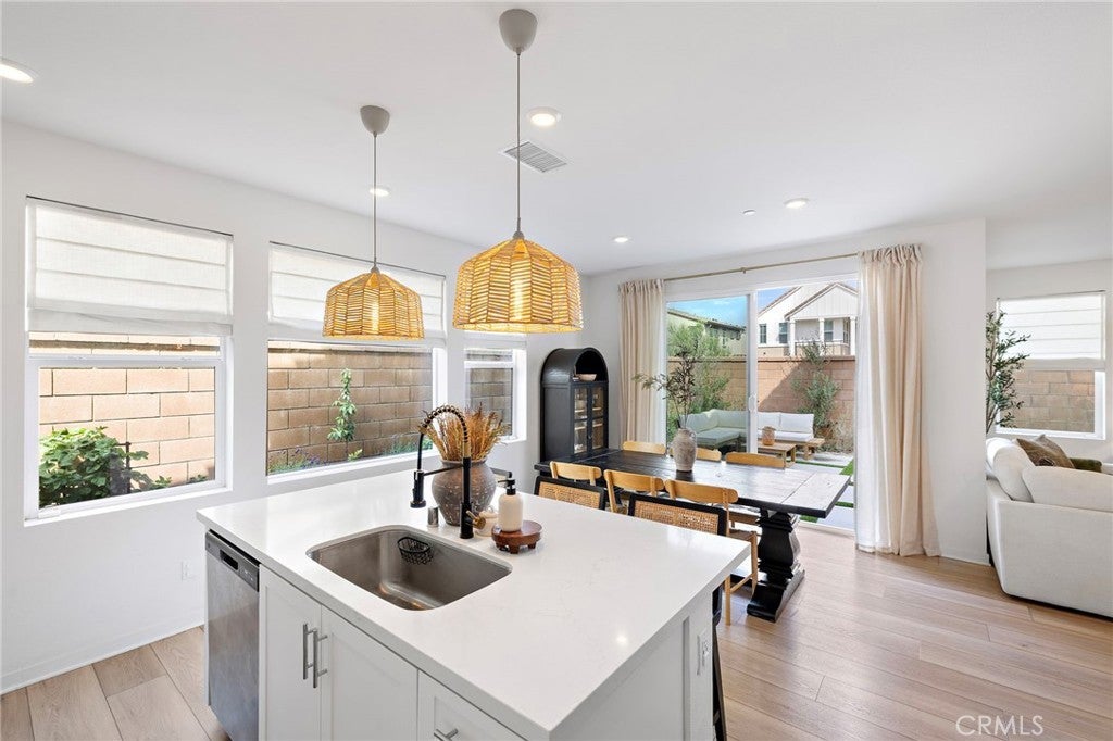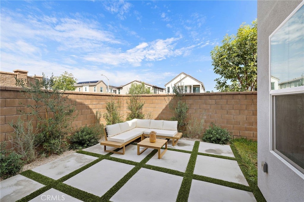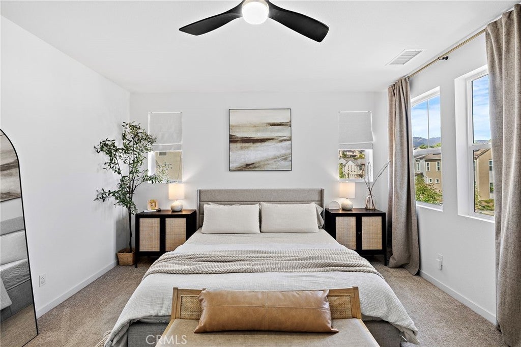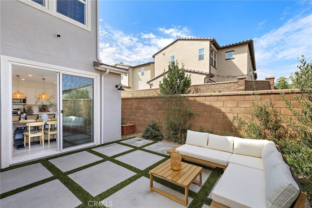This stunning detached home with solar panels is located in the gated Bedford community offering 3 bedrooms plus a versatile loft. Designed with an open-concept layout, the home features luxury vinyl plank flooring, modern white cabinetry, and quartz countertops throughout. The spacious living room is filled with natural light from surrounding windows and flows seamlessly into the kitchen, which offers ample storage, stainless steel appliances, and a large Quartz island with sink and seating that opens to the dining area and overlooks the backyard. Upstairs, a centrally located loft sits between all bedrooms—perfect for a family room, game room, or study. The expansive primary suite features a comfortable seating area, walk-in closet, and an en-suite bathroom with tile flooring, dual vanity, and a large glass-enclosed shower. A convenient upstairs laundry room completes the second level. The thoughtfully designed backyard offers a balanced blend of hardscape and green space, creating a functional and inviting outdoor setting. This turnkey home showcases Mediterranean-inspired architecture paired with modern finishes and energy efficiency. Residents enjoy resort-style community amenities including a pool, spa, fitness center, clubhouse, dog park, scenic walking trails, and playgrounds. Ideally located near shopping, schools, and the 15 freeway, and backing to Eagle Glen Golf Course, this home offers both comfort and convenience.