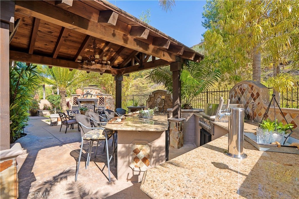 - Exterior FeaturesBarbecue, Rain Gutters, Awning(s), Fire Pit