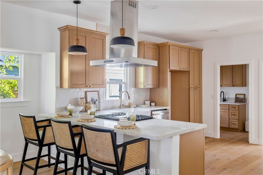 Step into a perfect blend of classic Los Angeles charm and modern design at 5670 Hub Street. This 4-bedroom, 2-bath home has been completely reimagined—featuring new electrical wiring, a new electrical panel, new water supply lines, and new drains for peace of mind and long-term value. Inside, natural light fills every room, accentuating the wide-plank waterproof wood floors, open layout, and carefully chosen finishes. The living room centers around a custom-tiled fireplace and flows seamlessly into a designer kitchen with warm white oak wood cabinetry, quartz countertops, and new stainless steel appliances. The primary suite offers a serene retreat with a spa-inspired bathroom showcasing a double vanity, large tiled walk-in shower, and brushed-bronze fixtures. Each additional bedroom carries the same balance of warmth and simplicity, while the guest bath features statement tile and modern design. Outside, enjoy a landscaped front yard, a private backyard ready for gatherings, and a detached garage offering excellent ADU or studio potential (buyer to verify). Located on a quiet street just moments from York Boulevard and Figueroa Street, you’re close to Highland Park’s favorite cafés, restaurants, and boutiques—plus easy access to Pasadena, Downtown LA, and major freeways. 5670 Hub Street combines timeless character, modern upgrades, and the creative energy of one of LA’s most desirable neighborhoods—an inspired place to call home.