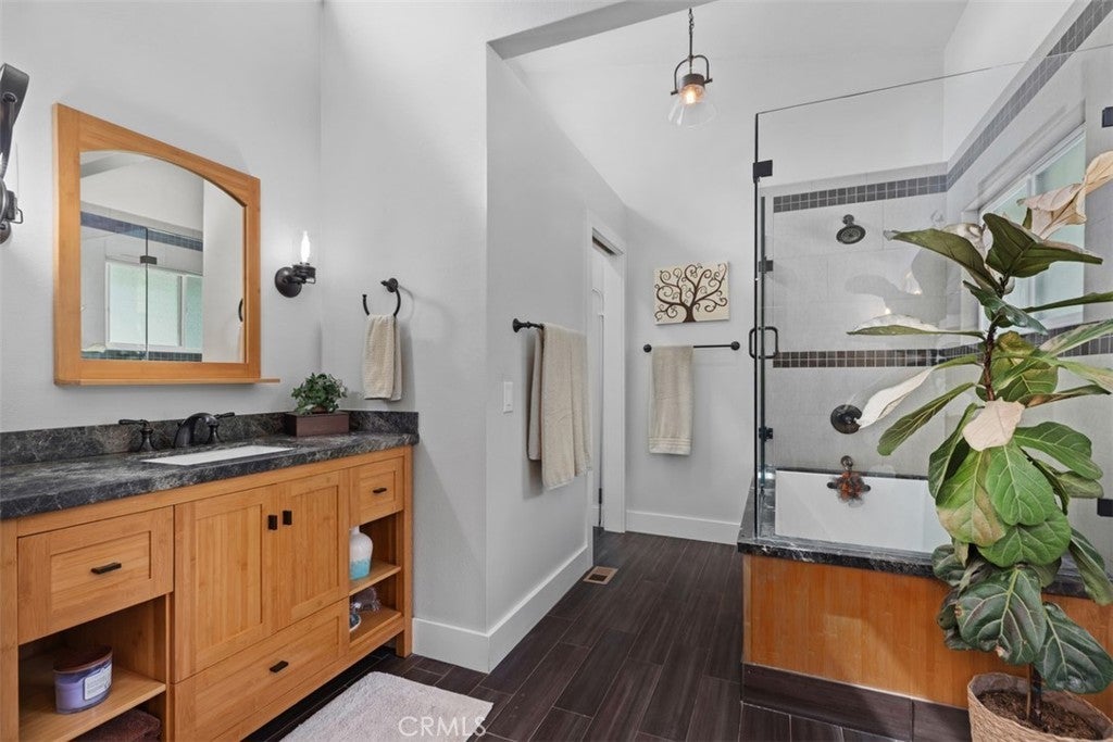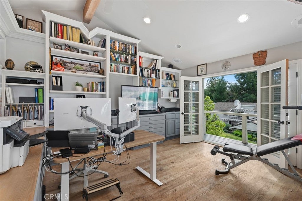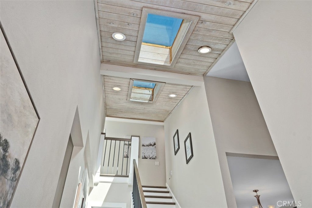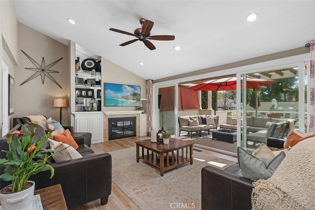Tucked away in the serene Village tract of Coto de Caza, welcome to this Tastefully Upgraded 4-Bedroom PLUS OFFICE, 3.5-Bathroom home on a Double Cul-de-Sac street. Upon entry you are greeted by an abundance of natural light through multiple skylights and newer tile flooring. The main level features a formal living room anchored by a remodeled stone fireplace and a wall-to-wall sliding glass door that leads to an expansive deck perfect for entertaining. This versatile space flows seamlessly into the dining area. The heart of the home is the chef-inspired kitchen, which boasts a large center island, quartz countertops, stainless steel appliances, including a 5-burner stove with a range hood, and plenty of seating for guests. The kitchen opens up to the family room. Adjacent to the kitchen is a versatile separate wing featuring an upstairs Office with its own Private Balcony. Below the office, you will find a secluded Bedroom with a Full Ensuite Bathroom and a private outdoor patio, making it an ideal setup for guests or a multi-generational living. The opposite wing of the residence offers a peaceful retreat on the second level, highlighted by a Primary Suite with a private balcony and a spa-like bathroom featuring a dual-vanity, a shower with a tub, and a walk-in closet. Two additional spacious bedrooms and another Full Bathroom complete the upstairs layout. Outside, the backyard serves as a true sanctuary with a comfortable seating area and views of the scenic landscape. Complete with a 2-Car Garage, this Coto de Caza gem perfectly blends upgrades with a functional, light-filled floor plan.