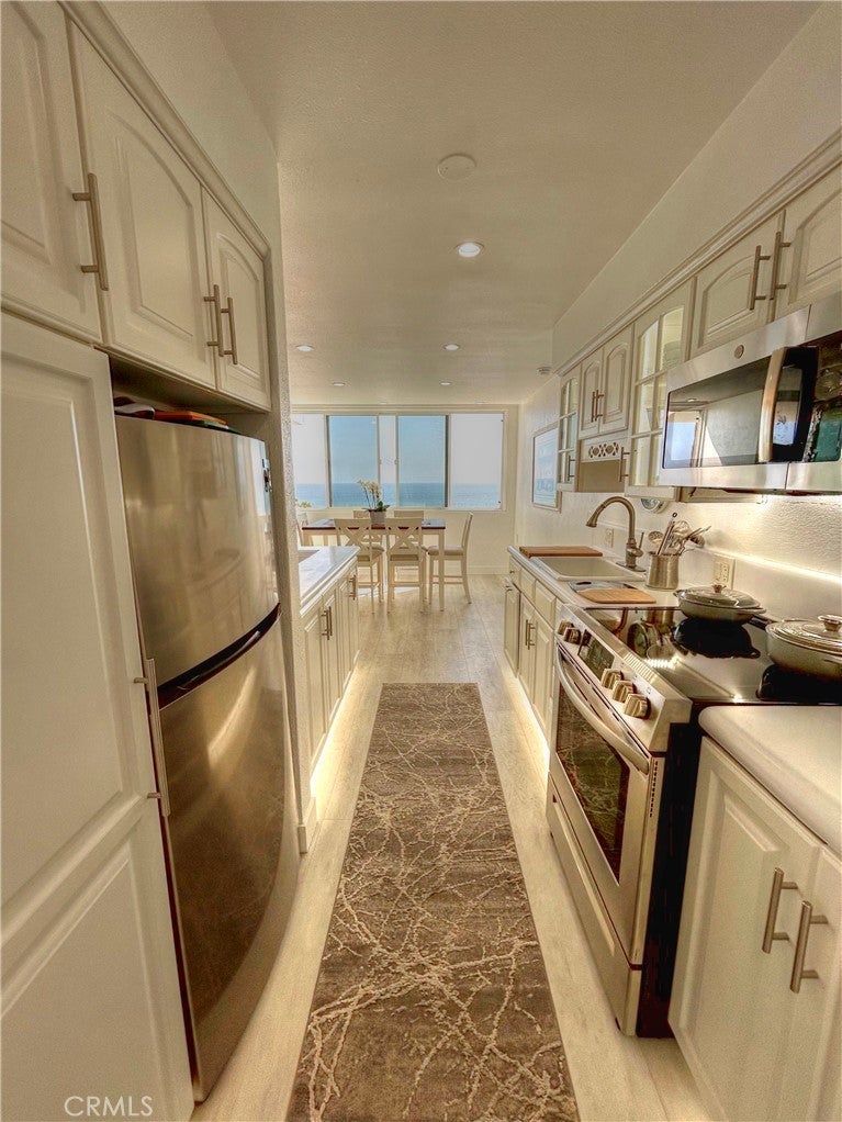 Fully furnished completely remodeled and upgraded condo with air conditioning in the Panorama Building, one of the best views in the city. Available June 2026 for several months +, Disappearing shades, dual pane windows, changeable LED colored lights, private balcony, gated parking with one dedicated spot, elevator, trash chute, grass area, ocean view swimming pool. Short walk to Ave Del Mar (downtown), and down Monterey Lane to the San Clemente Pier, Coastal Trail, beach, and dining. Renter pays electric.