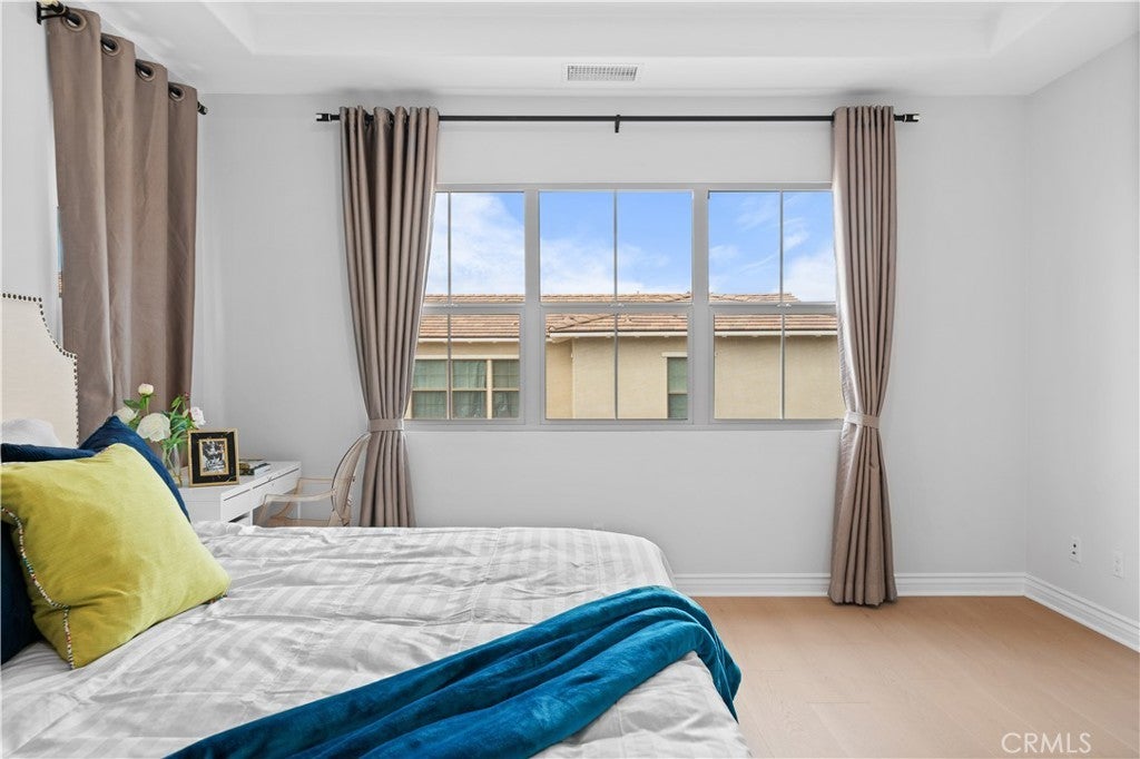 LOW HOA FEE! Beautiful 4-Bedroom Home in Eastwood Village. Built in 2019,this stunning two-story home offers 4 bedrooms and 3 bathrooms and California room in highly desirable Eastwood Village. The open-concept layout features Real wood floors for the whole house, large windows, and kitchen with quartz countertops, full backsplash, stainless steel appliances, and a 6-burner cooktop. A guest bedroom and full bath are located on the first floor, perfect for visitors or multigenerational living. The upstairs features primary suite includes a soaking tub, dual vanities, and walk-in closet. The house also features an attached two-car garage with ample storage space and direct home access for security and comfort. Step outside to a beautifully landscaped backyard with lush greenery, hardscaped seating areas, and plenty of room for entertaining guests or enjoying your own time outdoors. The HOA community had resort-style amenities at a low monthly fee: pools, spa, clubhouse, BBQ areas, tennis/basketball courts, trails, and playgrounds. Close to Woodbury Town Center, top Irvine schools Northwood high ,Don’t miss the opportunity to your new home!