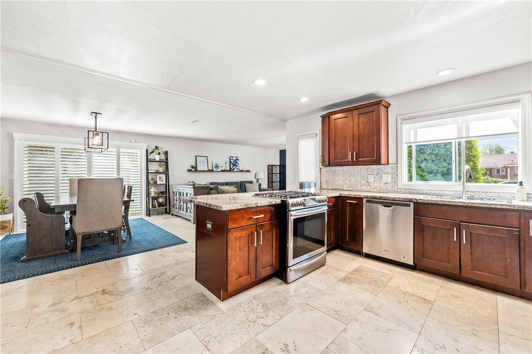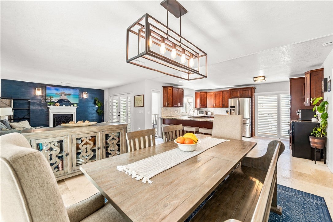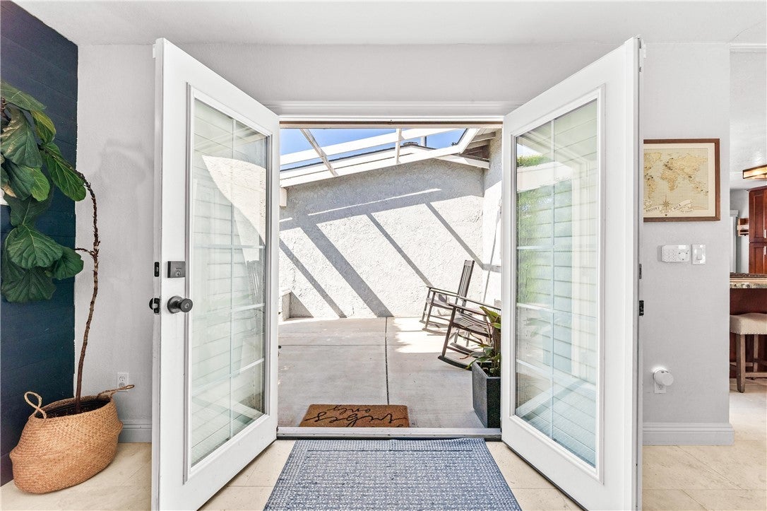 Welcome to this beautifully upgraded 3-bedroom, 2-bath home offering 1,274 square feet of comfort and style in the heart of Huntington Beach. Thoughtfully enhanced by its current owners, this home blends modern updates with relaxed coastal living all centered around a sparkling private pool. Inside, stone-finish marble flooring creates an open, airy feel throughout. The living room is both inviting and functional, featuring a striking accent wall, a stone wood burning fireplace with added conduit and TV mount above, updated interior lighting, and French doors that open to the front courtyard, creating seamless indoor-outdoor living. The stunning kitchen showcases maple cabinetry, mahogany granite countertops, a herringbone backsplash, stainless steel appliances, a custom wine nook, and recessed lighting perfect for everyday living and entertaining alike. Both bathrooms have been beautifully remodeled with fresh, modern finishes. The primary suite offers sliding doors to the yard and a spa inspired en suite bath designed for relaxation. Step outside to your newly remodeled backyard retreat. Enjoy turf and hardscape upgrades, a pergola for shaded lounging, updated fencing, and a secure pool area complete with new pool pump, new spa pump and heater, and added pool fencing. Major improvements provide peace of mind, including a new roof, solar panels, new PEX piping, new water heater, added attic insulation, grounded outlets throughout, added exterior outlets for exterior lighting, plantation shutters, blinds, pet resistant sliding screens, and a newer washer and dryer (2020). With central AC, easy freeway access, and shopping less than a mile away, this home truly has it all — style, comfort, efficiency, and thoughtful upgrades throughout.