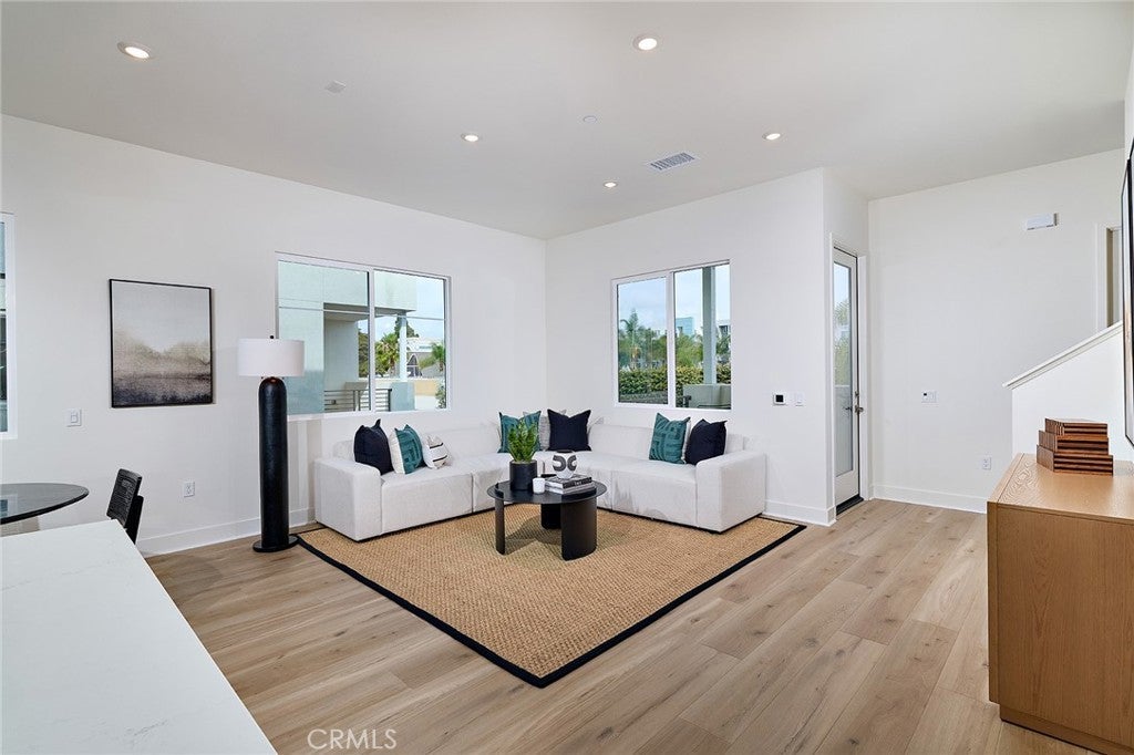 MOVE IN READY, NEW CONSTRUCTION, NO MELLO ROOS! Visit Essex + Gage by Risewell Homes, offering a prime Huntington Beach location accessible from the 405 and 22 corridors, minutes to the beach, with a walkable location to Bella Terra and numerous other shopping and dining options. Corner/end location for this townhome with highlights including a washer/dryer/fridge, sleek cabinetry, natural-look LVP flooring, Quartz counters, plush carpeting. Desirable floorplan possesses a Den/Flex space at main floor, 2 car side x side garage, an outdoor deck at the living/kitchen/dining area, plus a Primary Suite and two secondary Bedrooms at top floor. TURNKEY, builder incentives available.