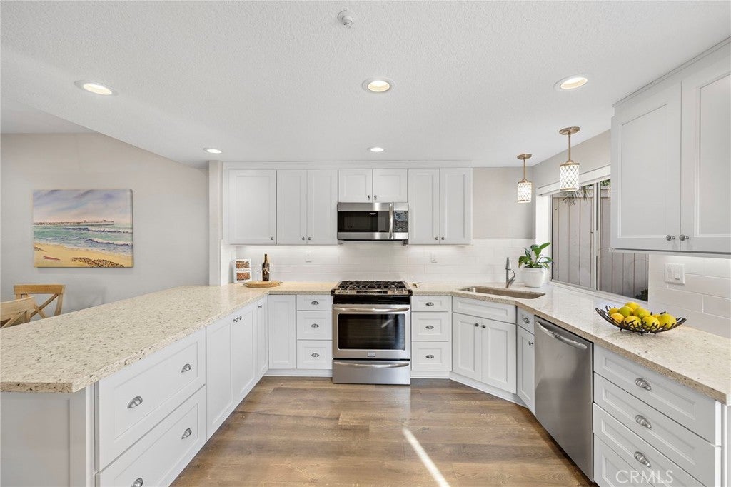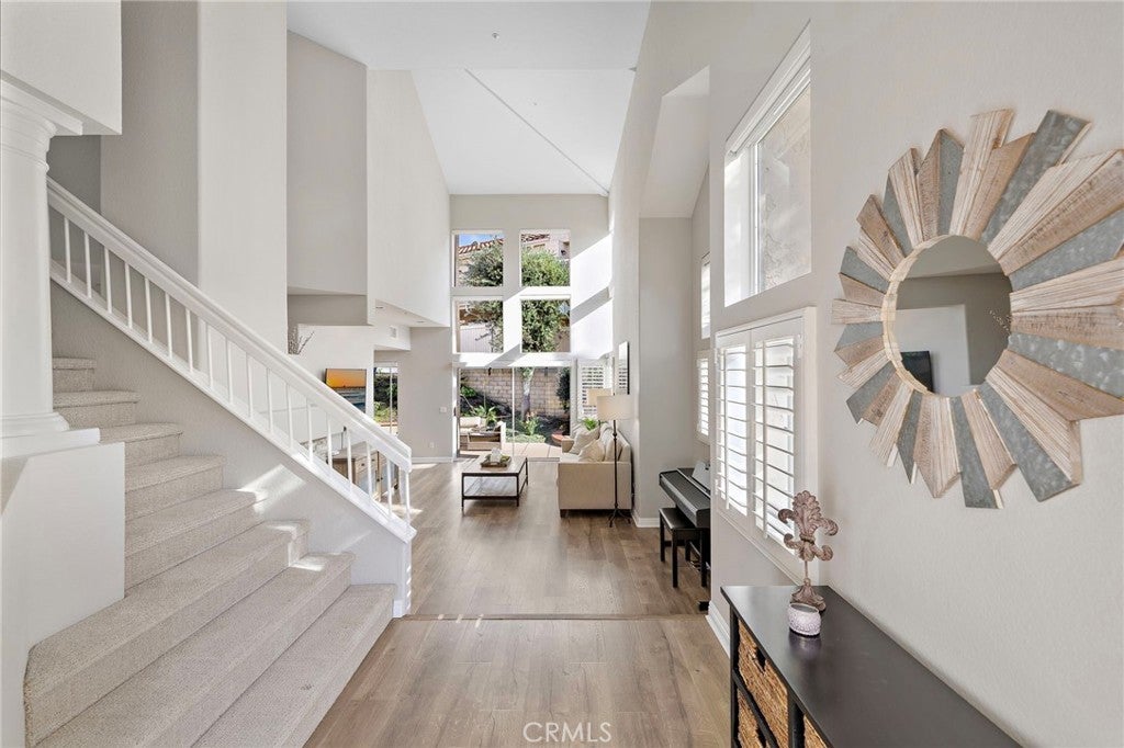 Experience refined coastal living in this upgraded end-unit home in the desirable Vilamoura community of Rancho San Clemente. Soaring ceilings and abundant natural light create an open, airy feel, while thoughtful upgrades and seamless indoor-outdoor flow enhance everyday living. Just minutes from the ocean, this three-bedroom, two-and-a-half-bath residence also features one of the neighborhood’s few full-length driveways and a beautifully landscaped patio perfect for relaxing and entertaining. The main floor features an open-floor-plan living space with high ceilings, an elegant dual-sided fireplace, a chef’s kitchen with quartz countertops, white soft-close shaker cabinets, stainless steel appliances, a generous peninsula, and plenty of cabinet space. The lower level also provides direct garage access, indoor laundry, a spotless epoxy-coated garage floor, and the oversized driveway. Upstairs, the spacious primary suite offers its own cozy fireplace, a private balcony, a walk-in closet with a built-in organizer, and a beautifully remodeled primary bath with dual sinks and a designer tile shower. Built-in hallway cabinets maximize storage and convenience. Additional features include a whole-home water filtration system, an EV-charger outlet, automatic window coverings, and a garage with epoxy flooring and overhead storage. Residents enjoy easy access to the community’s ocean-view pool and spa, Lifetime Fitness, Lobo Elementary, scenic trails, and nearby shopping and dining.801 Via Presa perfectly blends style, comfort, and coastal convenience.