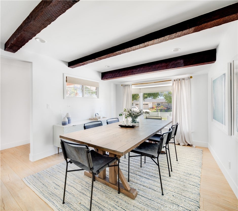 TIMELESS CHARM AND MODERN ELEGANCE! Nestled in the heart of Eastside Costa Mesa and beautifully reimagined, this single-level bungalow blends generous living spaces with natural design elements and high-quality finishes that will tempt the most discerning Buyer. From the moment you arrive, the park-like front yard framed by a charming white picket fence welcomes you home! Step through the timeless Dutch door into expansive living areas that flow seamlessly with unique finishes, newer windows, and a cozy fireplace that adds character and comfort. The gourmet kitchen is the heart of the home, thoughtfully designed for both everyday living and effortless entertaining. The large center island, quartz countertops with waterfall edge are the focal point with stainless steel appliances and custom cabinetry - creating a warm and inviting setting. Surrounded by lush gardens and mature trees, the spacious backyard offers wonderful outdoor areas for entertaining and play, highlighted by a glistening pool and ample room to gather. Nearly 1,700 square feet of maximized living space, all situated on an exceptionally oversized lot. The home features 3 large bedrooms and 2 fully remodeled bathrooms that have been thoughtfully renovated with designer finishes and modern flair. A versatile 4th bedroom or flex space can easily serve as a formal dining room, home office, or guest quarters. Additional highlights include a spacious two-car pull-through garage with abundant storage and an extra-long driveway. Very close to Back Bay and Newport Dunes just minutes away. Enjoy close proximity to five-star resorts, championship golf, premier shopping and exceptional dining. LOVE WHERE YOU LIVE!