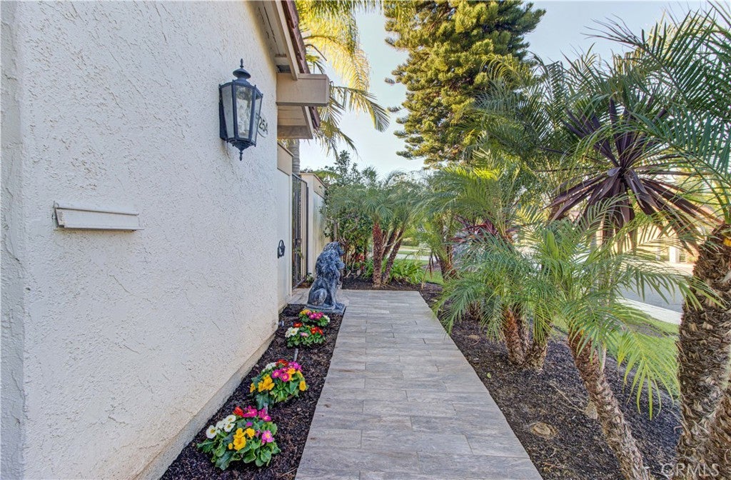 This very popular 3-br, 2-ba Villa Serena model is located in the prestigious Gate 11 area of Laguna Woods Village. This home has nearly 1600sf of living space in addition to a lovely front courtyard and rear patio. The kitchen has granite countertops, stainless steel appliances, newer cabinets with pull-out drawers, plenty of storage, a cozy breakfast nook, recessed lighting and a view of the beautiful tropical courtyard. The spacious living room has a fireplace, recessed lighting and a ceiling fan. Enjoy your dining room with space for a full-sized table and hutch. The master bedroom suite comfortably provides room for a king sized bed, two night stands, a large dresser and a reading chair. The master bathroom has dual sinks, a large soaking bathtub, a separate glass block shower and is en-suite. Either of the two guest bedrooms could serve with flexibility as a hobby room or home office. The one bedroom has been modified to provide direct access to the garage and is used as an office. The rear patio is landscaped with wispy palms and easily accessed by the living room or master bedroom. Other great features include central heat/AC, smooth ceilings and a full sized washer & dryer. This home has an oversized 2-car garage with plenty of storage. Come and see this home and Laguna Woods Village – the premier 55+ community. Enjoy the amenities of Laguna Woods Village including: a 27 and 9 hole golf course, separate pickle ball courts, 7 clubhouses, 5 swimming pools, tennis complex, fitness center, garden center, RV storage, community transportation, community television and a restaurant overlooking the golf course. There are over 250 clubs and organizations. Just minutes away from Laguna Beach, freeways, medical facilities and shopping. The HOA includes water, sewer, trash, basic cable TV and access to great amenities.