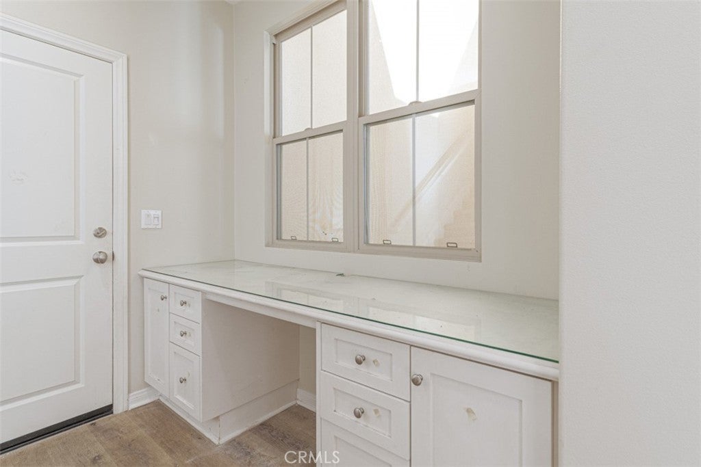 HIGHLY DESIRABLE HOME in the SANTA MARIA neighborhood of STONEGATE. This 2-bedroom home with an upstairs loft/office and 2.5 baths within approximately 1,538 square feet of comfortable space. The OPEN FLOOR PLAN feels bright and welcoming, with the kitchen acting as the central gathering space. It features a large center island, granite countertops and backsplash, stainless-steel appliances, including a refrigerator. Laminate wood flooring on the main level. The layout flows effortlessly into the dining and living areas. An interior atrium adds character and creates a flexible extension of the living space, perfect for relaxing or entertaining. ADDITIONAL HIGHLIGHTS include NEW LAMINATE FLOORING in the staircase, upstairs hallway, and bedrooms. LED recessed lighting, custom closet organizers, sliding mirrored closet doors, and window treatments. Near the direct-access garage entry, a charming office nook provides a practical work or study area. The attached two-car garage offers direct access and includes a 220V outlet suitable for EV charging. The home comes with a stackable washer and dryer. Ideally located near Stonegate’s resort-style amenities, including the Jr. Olympic pool and spa, parks, BBQ areas, basketball, and tennis courts. Conveniently close to Stonegate Elementary, Hummingbird Park, Woodbury Town Center, and the Jeffrey Open Space Trail.