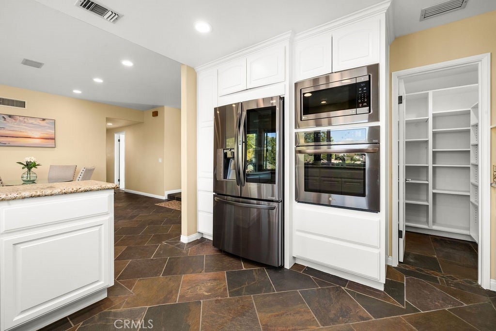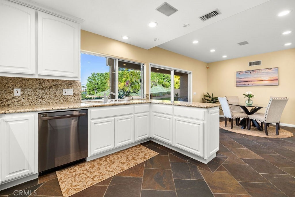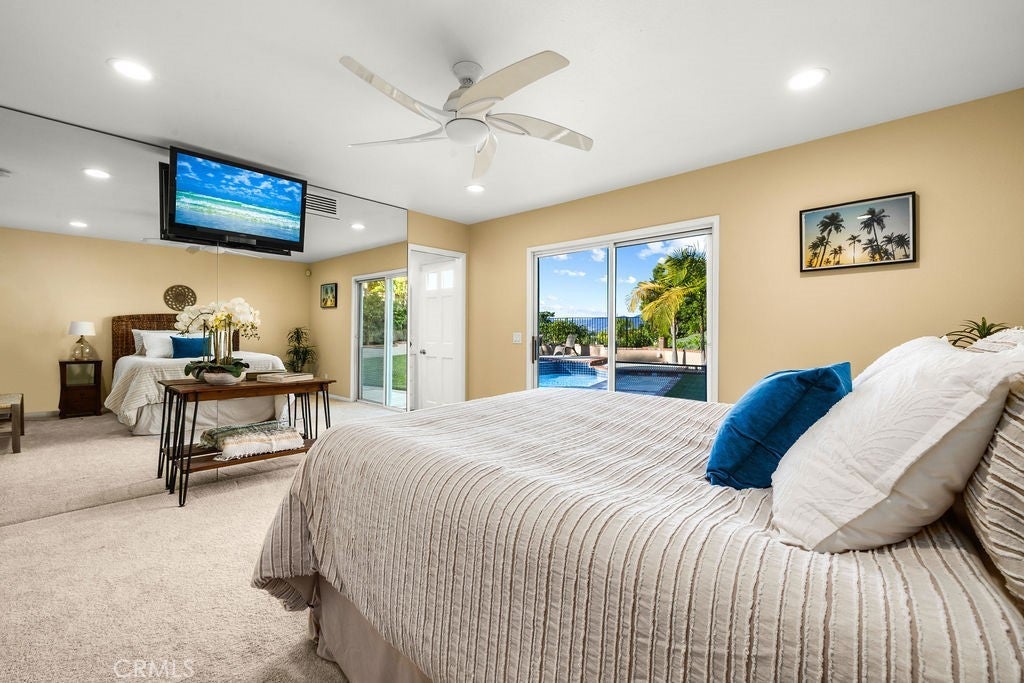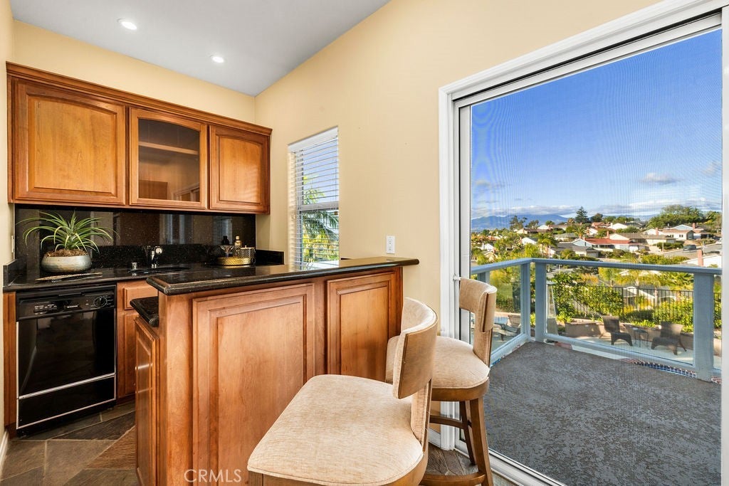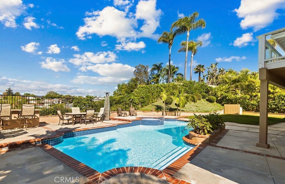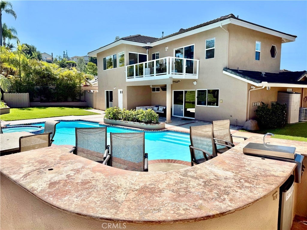 Introducing a truly exceptional dream home with 2 Suites - one downstairs and one upstairs offering sweeping panoramic views of mountains, city lights, and even seasonal snow-capped peaks. Ideally situated on a quiet cul-de-sac in highly sought-after Laguna Niguel—with no HOA—this beautifully remodeled 5-bedroom, 4-bath residence delivers the perfect balance of luxury, comfort, and functionality. Designed for both everyday living and effortless entertaining, the expansive great room features a built-in bar complete with refrigerator, sink, and dishwasher, and flows seamlessly onto a spacious view deck—perfect for morning coffee or unforgettable sunset gatherings. The upper-level primary suite is a true private retreat, showcasing its own view deck and a spa-inspired en-suite bath with dual granite vanities, a Jacuzzi tub, and a large walk-in shower. A secondary primary suite on the main level adds flexibility and convenience, offering a walk-in closet, en-suite bath, and direct backyard access. Four bedrooms are thoughtfully positioned on the main level, along with a laundry room with washer and dryer included and generous linen storage. The backyard is an entertainer’s dream, featuring a resurfaced pool and spa (2023), a fully equipped outdoor kitchen with grill, cooktop, sink, and refrigerator, and a stunning travertine countertop. A spacious grassy area and outdoor heaters create a welcoming space for year-round enjoyment. The kitchen overlooks this private outdoor setting and is beautifully appointed with custom solid wood cabinetry, large pull-out drawers, a five-burner gas cooktop, built-in microwave, walk-in pantry, and LG linear compressor refrigerator. An adjacent covered patio with a built-in gas heater enhances the seamless indoor-outdoor lifestyle. Additional highlights include a custom stone fireplace, built-in surround sound throughout the home and backyard, and a versatile under-stair storage area ideal for a wine cellar. Energy-efficient upgrades include owned solar, a tankless water heater, dual-zone A/C, and a full PEX re-pipe. The two-car garage offers built-in cabinetry, a workbench, and attic storage, while additional features include RV parking and a driveway accommodating up to three vehicles. Ideally located just minutes from Dana Point Harbor, world-class beaches, shopping, and dining, this remarkable home offers the very best of coastal Southern California living.