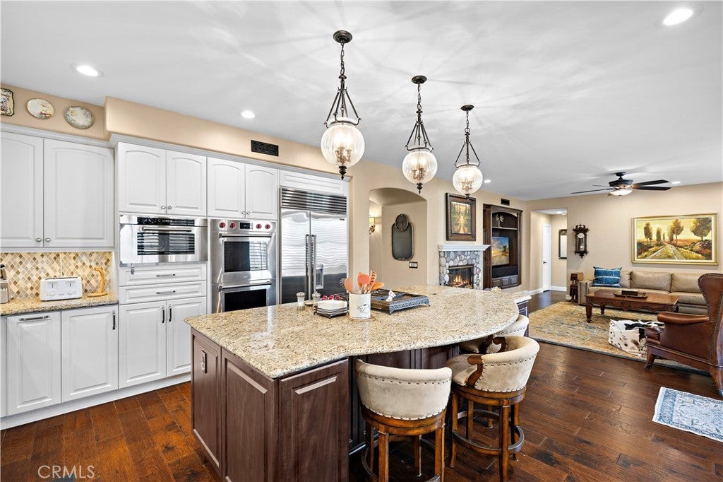 Situated on one of the largest lots in the community, this beautifully maintained estate offers an exceptional blend of space, comfort, and thoughtful design. With 5 bedrooms—including an expansive room that can serve as a bonus room—plus an additional downstairs room ideal for an office or den, and a built-in desk area upstairs, this home provides remarkable flexibility for work, study, and multi-generational living. Pride of ownership is evident throughout. The open floor plan features soaring ceilings and abundant natural light, creating a bright and inviting atmosphere. Upon entry, you’ll immediately notice the custom touches, including a gourmet kitchen equipped with stainless steel Wolf and Sub-Zero appliances, generous cabinetry, and a seamless connection to the family room with a built-in media center. A convenient downstairs bedroom and full bathroom—with direct access to the backyard—make hosting guests effortless, especially for those enjoying the sparkling pebble-tech pool. Upstairs, the spacious primary suite offers dual vanities and a large walk-in closet, complemented by generously sized secondary bedrooms. Additional upgrades include a newer tankless water heater, a water softener system, and well-maintained systems throughout. The expansive backyard is an entertainer’s delight, offering ample space to relax, dine, and enjoy the quintessential California lifestyle. This home truly has it all—space, style, functionality, and a premier location.