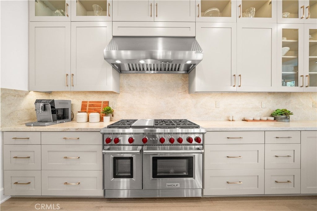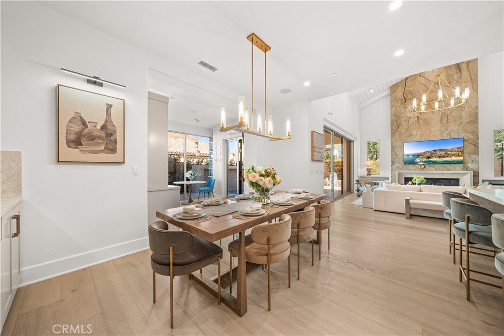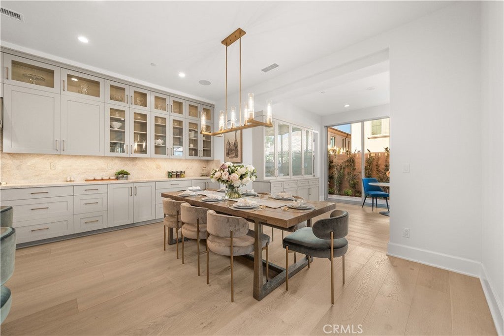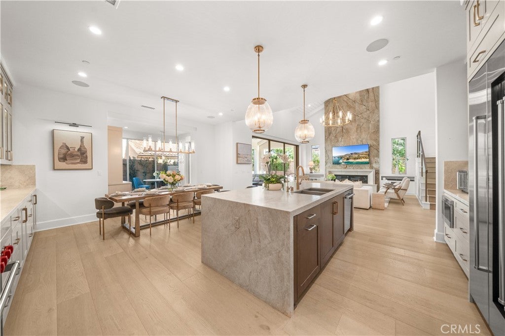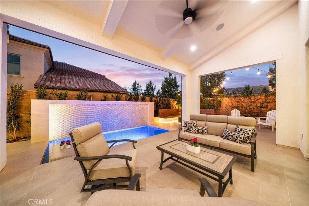 Corner Lot | Over $700K in Upgrades — Surpassing the Model Home | Rare Ravello 3X floor plan with Permitted Expansions Located on a premium corner lot in the prestigious 24-hour guard-gated community of The Groves at Orchard Hills, this home offers enhanced privacy and abundant natural light. This extensively customized Ravello 3X residence showcases over $700K in luxury upgrades along with rare permitted expansions, creating a unique floor plan within the community. Designed with an elegant open-concept layout, the residence features Euro oak engineered hardwood flooring, recessed lighting, crown molding, custom paint, and designer wall sconces. The great room boasts soaring ceilings with decorative beams, sliding glass doors, and a statement fireplace wrapped in large-format tile with custom built-in cabinetry. The chef’s kitchen features floor-to-ceiling illuminated glass cabinetry, premium Wolf appliances, and a custom Sub-Zero refrigerator with wine display and walk-in pantry. A Marbolis Niaca leathered stone waterfall island with matching backsplash anchors the space. The kitchen flows into the formal dining area and a bright breakfast room surrounded by glass sliding doors. Motorized retractable shades provide privacy and sun control. A prep kitchen offers flexibility for cooking. The main level also includes a guest suite, powder room, and an office with sliding doors. A glass staircase leads to the second level featuring a spacious loft and three additional bedroom suites. Each bedroom offers its own highly upgraded en-suite bathroom with elegant wainscoting and designer finishes. One secondary bedroom includes a large private balcony overlooking the orchard views. The primary suite includes its own balcony and a spa-inspired bathroom finished with full marble walls and flooring, dual vanities, custom cabinetry, an oversized shower, soaking tub, TOTO Washlet toilet, and a California Closets walk-in wardrobe. The backyard is designed for outdoor living and entertaining, featuring a California Room with motorized shades, waterfall feature, fire pit seating area, private putting green with party lights. Additional highlights include paid off solar, upgraded insulation, built-in speakers, whole-house water softener and drinking water filtration, custom paver driveway, epoxy garage flooring, and a Tesla EV charger. Residents enjoy resort-style amenities including pools, parks, clubhouses, scenic trails, and access to top-rated schools.