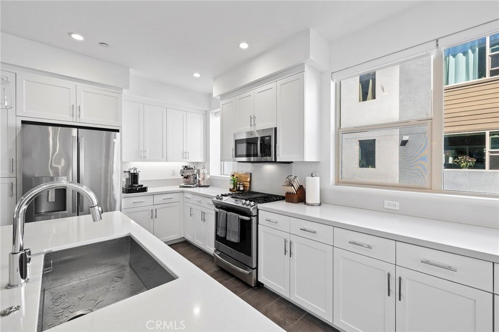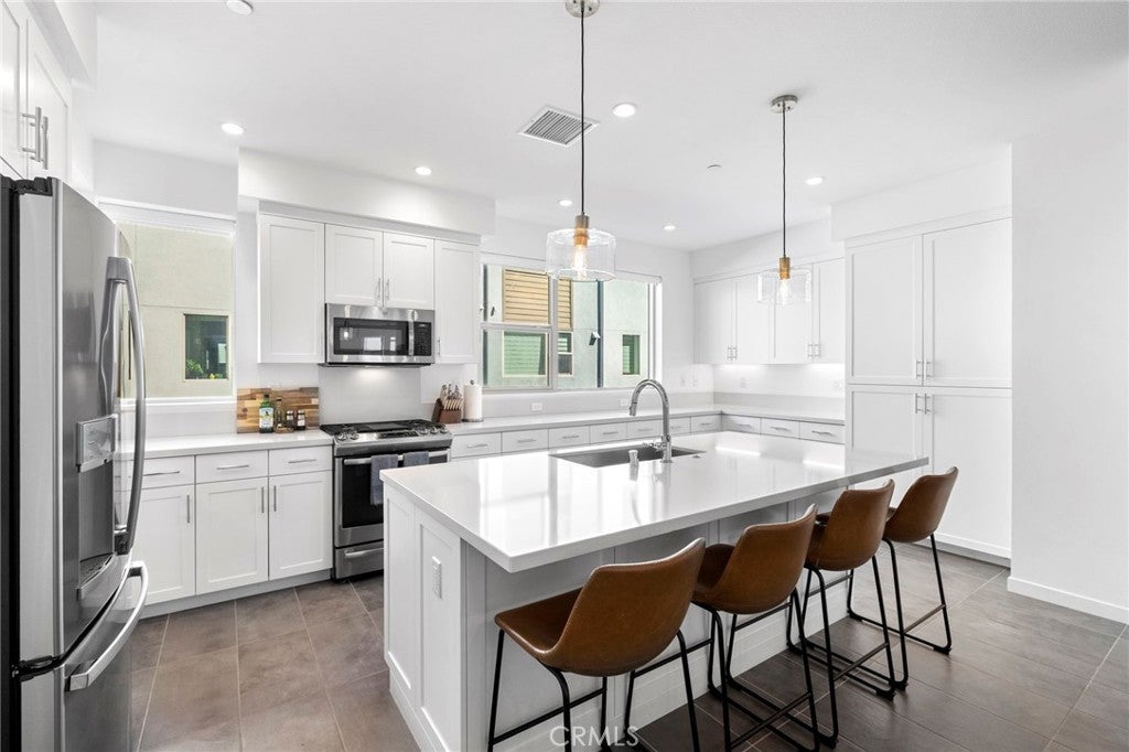 Modern design meets everyday functionality in this beautifully appointed, turnkey multi-level townhome located in MDL, a gated community in Irvine. Thoughtfully designed across four levels, the home offers inviting spaces for both comfortable living and effortless entertaining. The first floor features a spacious bedroom with a full ensuite bath, ideal for guests or as a dedicated office, along with direct access to the attached two-car garage. The main/second level serves as the heart of the home, showcasing a spacious kitchen with an abundance of counter space anchored by a large center island. The open-concept living area flows seamlessly and includes a convenient powder bathroom. Large windows bring in natural light, while custom kitchen window blinds add a polished finishing touch. On the third level, the primary suite provides a comfortable retreat with a large walk-in closet. On the same level, there is an additional bedroom with its own ensuite bath. All bedrooms in the home feature ensuite bathrooms, offering comfort and functionality throughout. The top-level rooftop deck offers a rare and versatile outdoor living space, perfect for entertaining, unwinding, or enjoying sunset views. Additional outdoor spaces in the community include a pool, spa, outdoor fireplaces, clubhouse, bocce court, BBQ areas and tot lot. With close proximity to major commuter routes including the I-405, as well as dining, shopping, and just minutes from John Wayne Airport, this home delivers an ideal blend of accessible, modern and resort-style Irvine living.