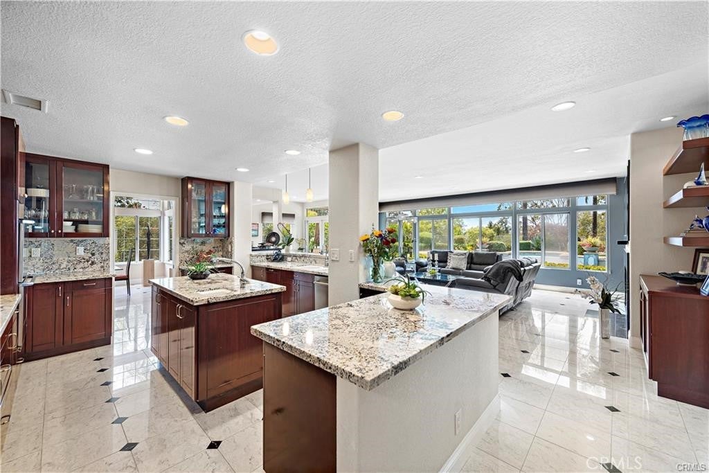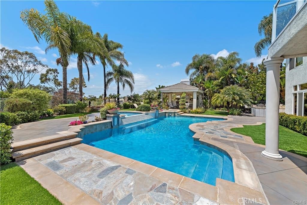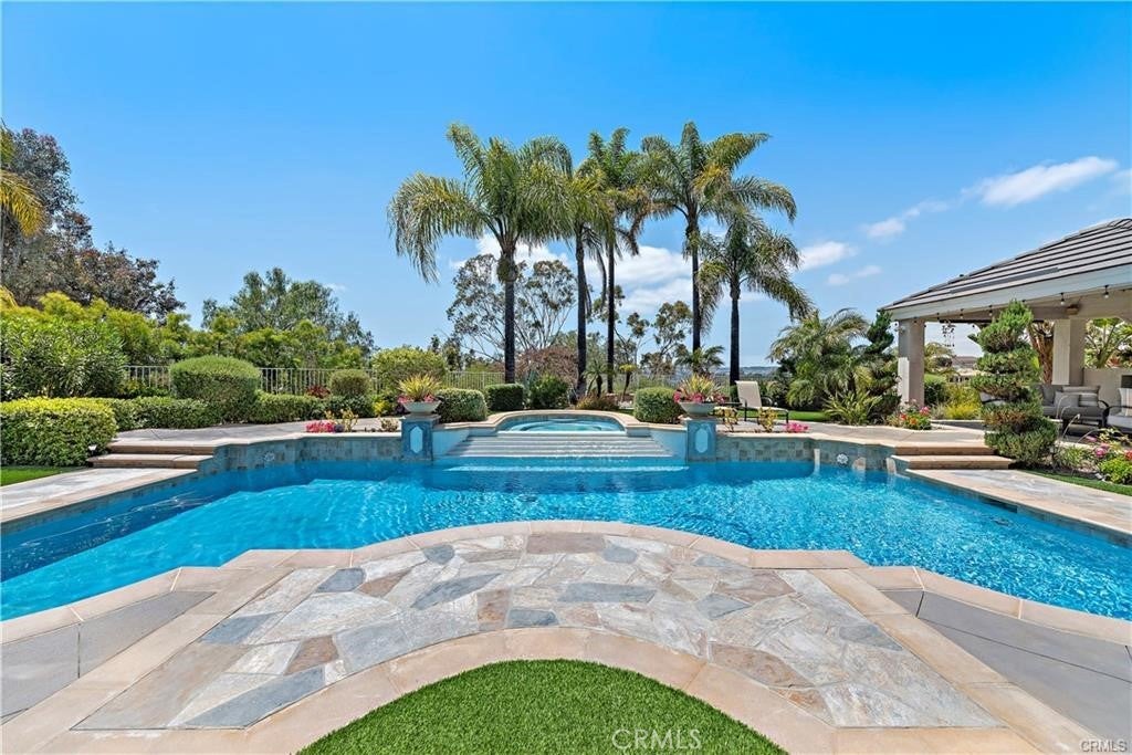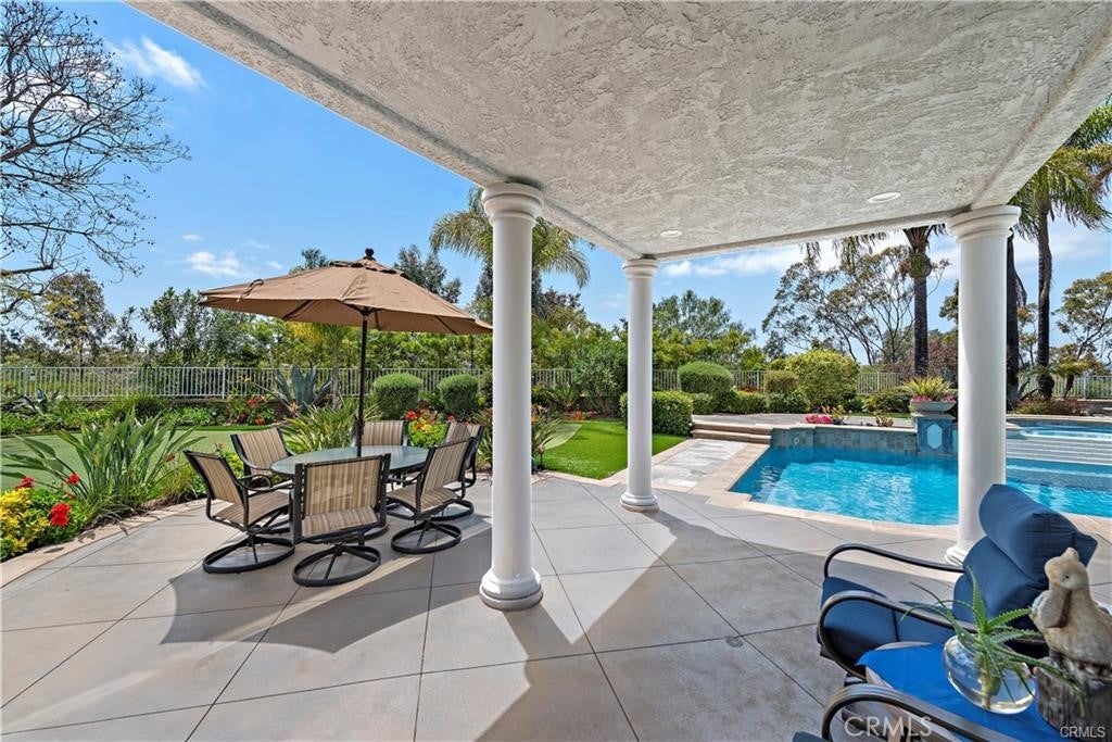 Located in the highly sought-after community of Moulton Ranch is a gorgeous, fully furnished end-of-cul-de-sac view home that has it all! The ideal property for indoor/outdoor living & entertaining. It has been remodeled & customized both inside and out. The home features a dramatic dual-iron staircase entry with vaulted ceilings, leading into a formal living room & dining room. The home offers one bedroom and bathroom downstairs and three bedrooms and two baths upstairs. The master suite features a walk-in closet, an office/den, a sitting area with a fireplace, and a separate shower/jet tub for two. Granite countertops in all bathrooms. Amenities include a large family room with a walk-behind bar that opens to a chef's kitchen with a large center island, granite counters, double ovens, a built-in refrigerator, extra pantry storage, and a five-burner gas stove-top. There are custom-built-in cabinets in the family room and breakfast room. The backyard features a beautiful pool, spa, putting green, and a built-in BBQ with seating. Enjoy the outdoor room with a fireplace and TV located at the back of the property overlooking a fire ring with seating. This home offers privacy, views, and resort-quality features.