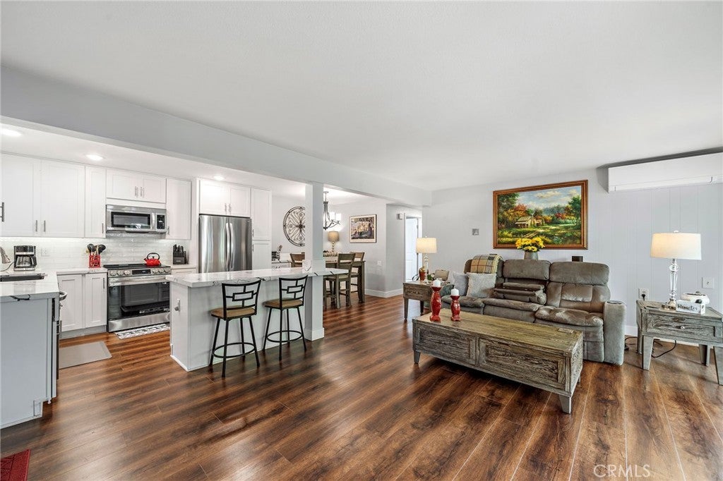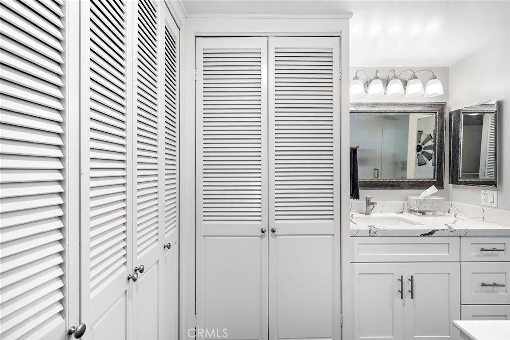 Beautifully remodeled end-unit Majorca in a prime greenbelt location offering privacy, natural light, and modern comfort. This thoughtfully upgraded 2-bedroom, 2-bath home features a rare in-unit washer and dryer and a highly desirable open layout. The home is enhanced with a recently installed energy-efficient mini-split system in every room, providing quiet, customizable heating and cooling year-round --- an exceptional feature not commonly found in similar homes. Enjoy peaceful greenbelt views from your living space and the added privacy that comes with an end-unit location. The interior offers updated finishes, a bright and airy feel, and a move-in ready experience. Ideally situated within the vibrant 55+ community of Laguna Woods, residents enjoy resort-style amenities including golf, pools, fitness center, social clubs, and more.A standout value for a fully upgraded Majorca----don't miss this opportunity. SOME OF THE MANY FEATURES INCLUDE: REMODELED KITCHEN - OPEN FLOOR PLAN - KITCHEN ISLAND - QUARTZ COUNTER TOPS - WHITE CABINETS - STAINLESS HIGH END APPLIANCES - MINI SPLIT A/C and HEATING SYSTEM WITH 3 UNITS - WOOD LOOK FLOORING - NO STAIRS - NO STEPS - INSIDE LAUNDRY - SMOOTH CEILINGS - DOUBLE PANE WINDOWS - REMODELED PRIMARY BATHROOM. This home is conveniently located close to Clubhouse 1 and Gate 1. Laguna Woods is one of the most prestigious age 55 and over communities in the US. In Laguna Woods you have access to: bus system around the community & to area shopping, restaurants, medical facilities; 5 pools & 4 hot tubs; golf, tennis, library, 7 clubhouse, a multitude of clubs, 3 fitness centers, theater, horse back riding/stables, garden centers, pickle ball, basketball, card rooms, billiards, bocce ball & more!