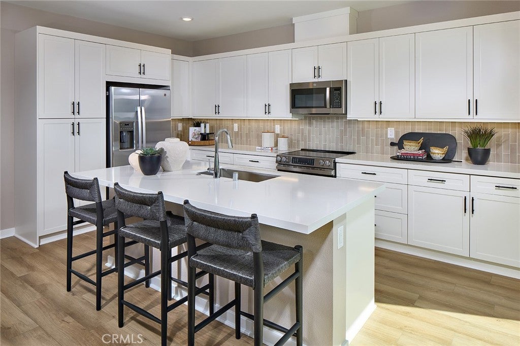 NEW CONSTRUCTION at Eastvale Square by Risewell Homes. Newly released premium, perimeter location (adjacent to extra parking opportunities). This modern three story floorplan blends open living spaces with smart functionality, starting with a welcoming entry that leads to the convenient 2 car tandem garage on the first level. The second floor serves as the heart of the home, featuring an expansive living and dining area that flows seamlessly into a contemporary kitchen with a spacious island, pantry, and access to a private deck—perfect for indoor outdoor entertaining. Upstairs, the third floor offers a tranquil primary suite complete with a generous walk-in closet and beautifully designed en-suite bath, along with two additional bedrooms, a full secondary bath, and a dedicated laundry closet. Thoughtfully arranged for today’s lifestyle, this home combines comfort, flexibility, and effortless everyday living. Closer to first-class community facilities (The Junction), highlighted by a modern clubhouse, wellness center, pools, playground, greenspace, and so much more. We invite you to visit and experience the Eastvale Square lifestyle, surrounded by so many dining/shopping/entertainment options both current and upcoming (*Whole Foods) as well as proximity to 15/91/71 commuter routes and employment hubs. Builder concessions available, ESTIMATED APRIL MOVE IN.