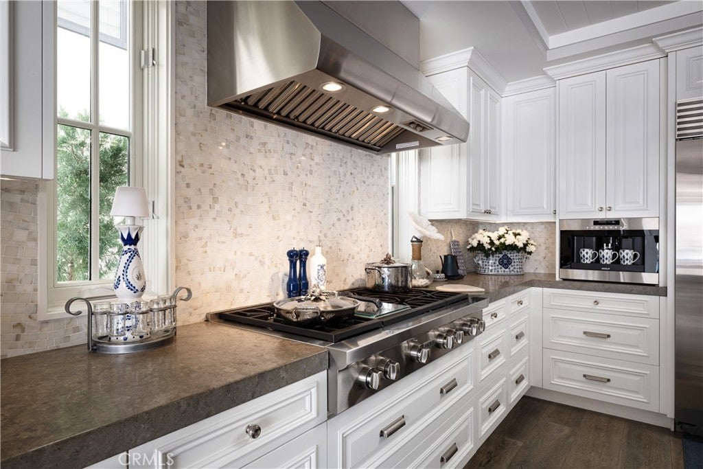 - AppliancesSixBurnerStove, Barbecue, Convection Oven, Double Oven, Dishwasher, Gas Cooktop, Disposal, Gas Oven, Ice Maker, Refrigerator, Range Hood, Self Cleaning Oven, Water Softener, Tankless Water Heater, Vented Exhaust Fan, Water Purifier