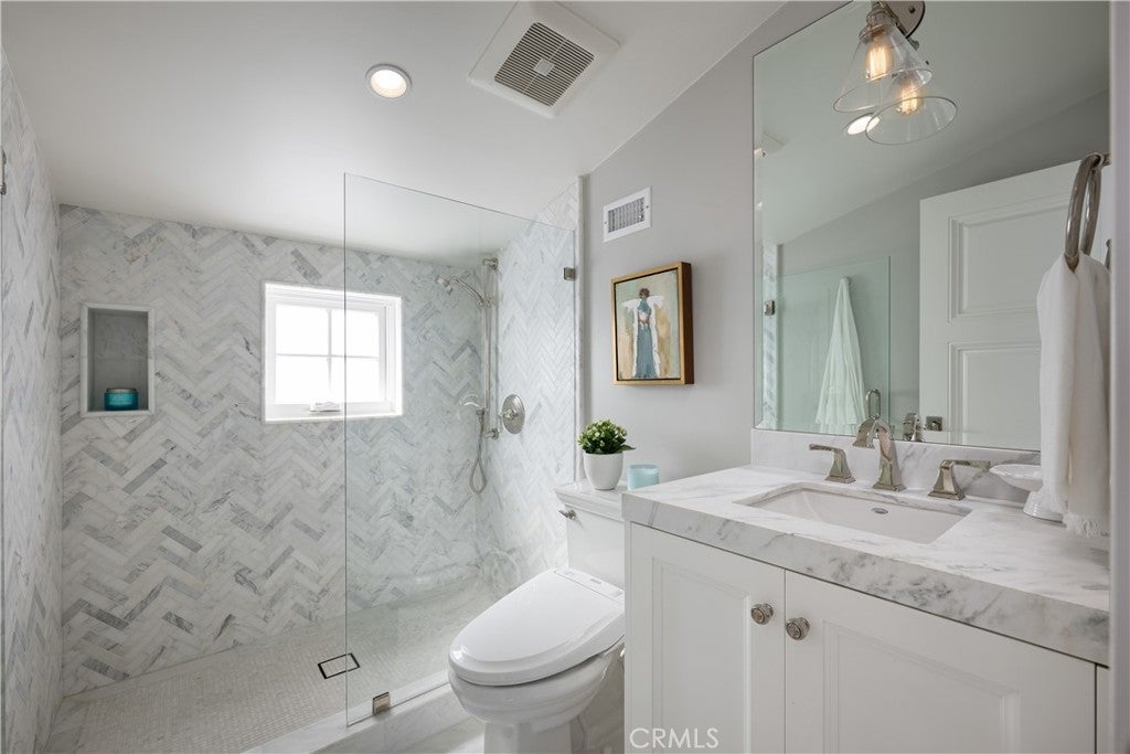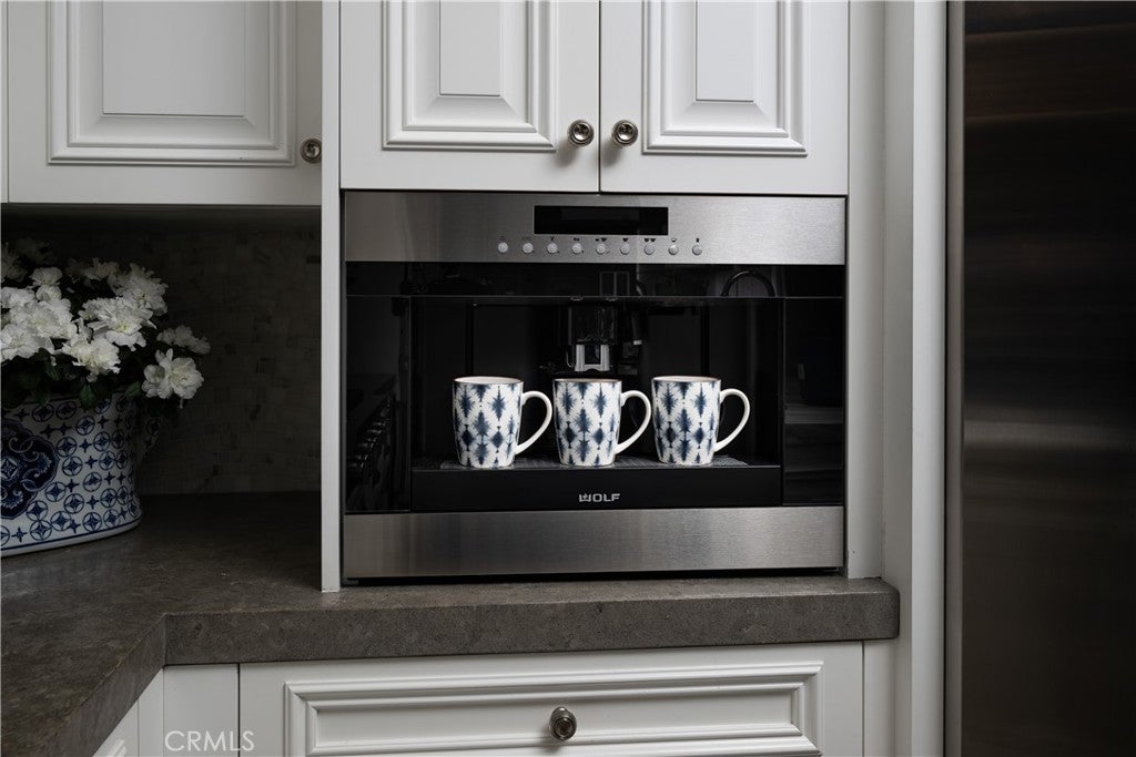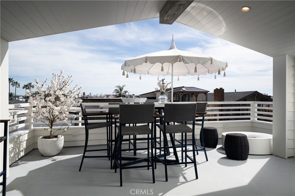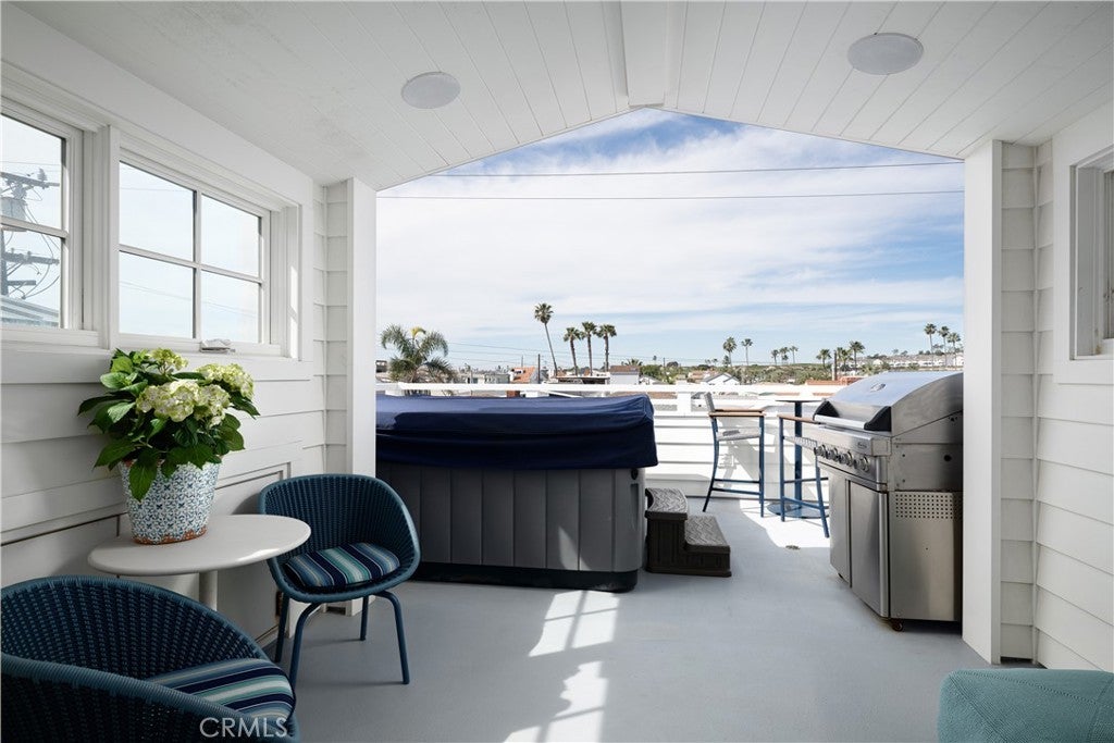 Just steps from the sand in one of Newport Beach’s most coveted locations, this impeccably upgraded coastal residence offers refined design, panoramic rooftop views, and effortless seaside living across three thoughtfully designed levels connected by an elevator. This home features 3 ensuite bedrooms plus a versatile office/optional fourth bedroom and 5 bathrooms, complemented by soaring 9-foot ceilings, rich oak flooring, and custom finish carpentry. Expansive sliding doors fill the home with natural light and create seamless indoor–outdoor flow, ideal for relaxed daily living or sophisticated entertaining. Two marble-clad fireplaces anchor the living spaces, adding warmth and architectural elegance. The entertainer’s kitchen is both functional and striking, featuring Sub-Zero refrigeration, a 48” Wolf range, double oven with steamer, built-in Wolf espresso machine, integrated wine refrigerator, custom cabinetry, and natural honed stone and Calacatta Borghini marble countertops with a statement mosaic marble backsplash. The upper level serves as a true indoor–outdoor retreat, opening to dual rooftop decks with sweeping views of the Pacific Ocean, Catalina Island, city lights, Fashion Island, and Saddleback Mountain. A covered entertaining area with built-in buffet, sink, and enclosed wine refrigerator, plus a private spa, provides an ideal setting for sunset relaxation or comfortably entertaining a large party in luxury. Additionally, the third level includes a bonus/flex room, perfect for a media room, gym, game room, or private lounge, offering extra versatility separate from the main living and bedroom spaces. Outdoor living continues with a welcoming front patio, custom fountain, and covered beach shower. Interior highlights include plantation shutters, custom window coverings, a thoughtfully designed office with built-ins and concealed storage, and a beautifully appointed custom closet in the primary suite. Additional features include surround sound, a security system with video surveillance, fire sprinklers, premium systems throughout, a two-car garage with custom cabinetry, epoxy flooring, and a Tesla charger, plus a rare additional carport space — a highly sought-after amenity in this beach-close location. Impeccably maintained and move-in ready, 121 41st Street blends luxury, comfort, and coastal lifestyle — ideal as a full-time residence or elevated beach retreat.