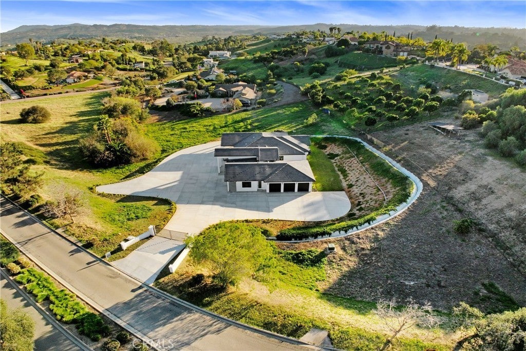 Welcome to 2027 Via Monserate, a beautifully crafted brand-new custom-built home nestled in the scenic hills of Fallbrook within the prestigious Rancho Fallbrook community. Offering privacy, space, and refined modern living, this 4-bedroom, 3.5-bath residence blends contemporary design with the peaceful charm the area is known for. The open-concept floor plan features vaulted ceilings, expansive windows, and abundant natural light, with seamless flow between the kitchen, dining, and family rooms—all framed by picturesque hillside views. The gourmet kitchen is appointed with premium KitchenAid appliances, a built-in refrigerator, custom cabinetry, and elevated finishes. The spacious primary suite serves as a private retreat with a spa-inspired bath and separate generously sized his and hers closet space, while the secondary bedrooms are thoughtfully positioned for comfort and privacy. Additional highlights include an oversized three-car garage, extended driveway for guest parking, and a sizable lot with room for outdoor entertaining space, a guest house, or workshop. Built with upgraded 2x6 framing, fully insulated interiors (including the garage), dual high-efficiency 4-ton Trane HVAC systems, and an owned 6kW solar system, this fully custom home delivers quality construction and energy efficiency throughout.