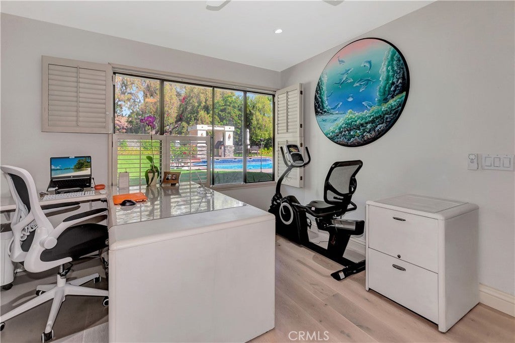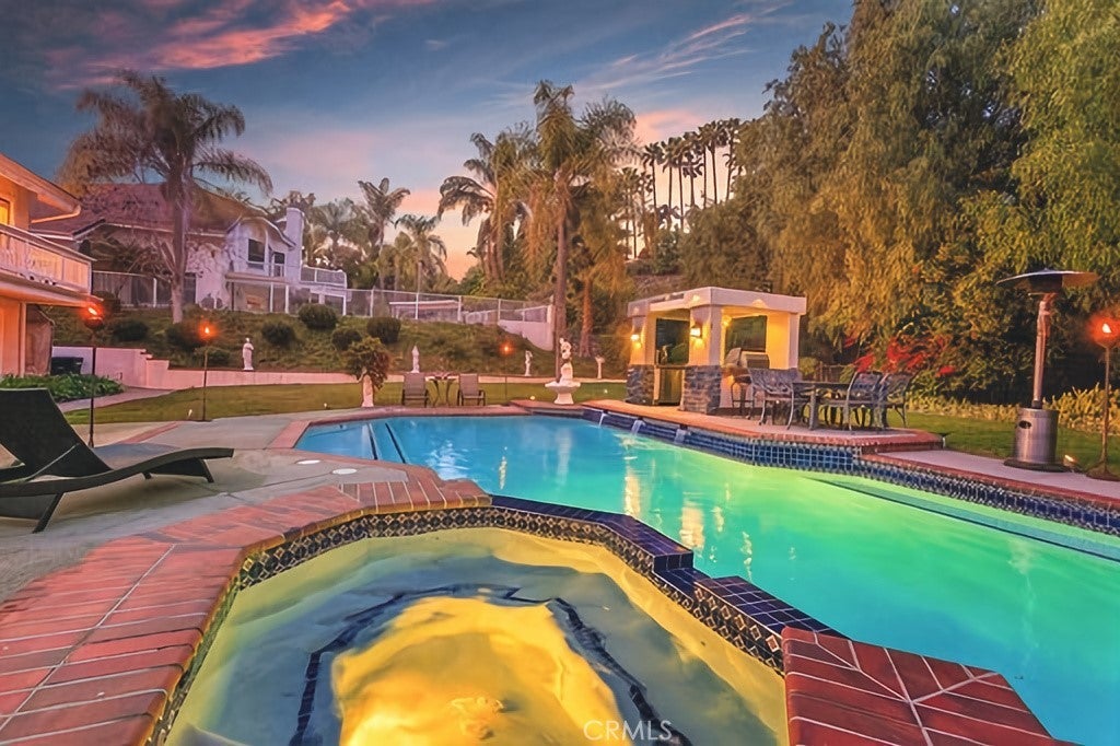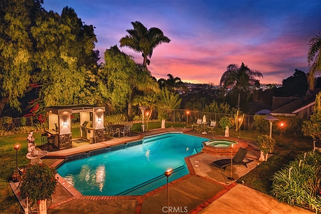SIGNIFICANT PRICE IMPROVEMENT!!! Welcome to this exceptional Nellie Gail Ranch estate, offering 3,438 sq ft of spacious living space on a rare 21,000+ sq ft FLAT, equestrian-zoned lot with breathtaking views of rolling hills, lush valleys, and twinkling city lights. Nestled on one of the community’s most scenic streets, this home backs to open space with no home behind it, offering unparalleled tranquility and room to build an ADU. A lushly landscaped front yard and double-door entry lead into a home filled with natural light, vaulted ceilings, and a blend of Italian tile and natural hardwood flooring. The layout flows from the formal living room with a cozy fireplace and conversation pit, to the elegant dining room, and into a bright family room with custom fireplace, remodeled bar, wood flooring, recessed lighting, and picture-perfect views of the serene backyard and pool. The kitchen features granite countertops, furniture-quality cabinetry, center island, stainless steel appliances, and a cheerful breakfast nook that opens to a party-perfect deck with sweeping views—ideal for hosting or relaxing. The flexible floor plan includes 4 bedrooms and a large office, easily convertible to a 5th bedroom. The main level offers two spacious bedrooms including the office, ideal for guests or multi-gen living. Upstairs, the primary suite offers a double-door entry, loft/den retreat, brick fireplace, view deck, and a spa-like bath with soaking tub, dual vanity, separate shower, and a center island with drawers surrounded by mirrored double-door closets. Upstairs,you'll find two extra generously sized bedrooms, along with a shared full bathroom with in-tub shower. Step into your private oasis: a newly plastered oversized pool & spa with triple waterfalls, full Viking outdoor kitchen with beer tap, fridge, burners, sink, stereo, and custom lighting, plus lush lawn, gardens, and storage shed with direct trail access. Additional features include new PEX full house repiping, 3-car garage with natural cedar/fir doors with newer motor and pull-down attic storage. Minutes to freeways, two parks, top-rated schools, and access to the exclusive Nellie Gail’s exclusive Swim and Tennis Club, Luxury Club House, horse trails and much more- this rare gem offers true resort-style living in one of OC’s most coveted communities.