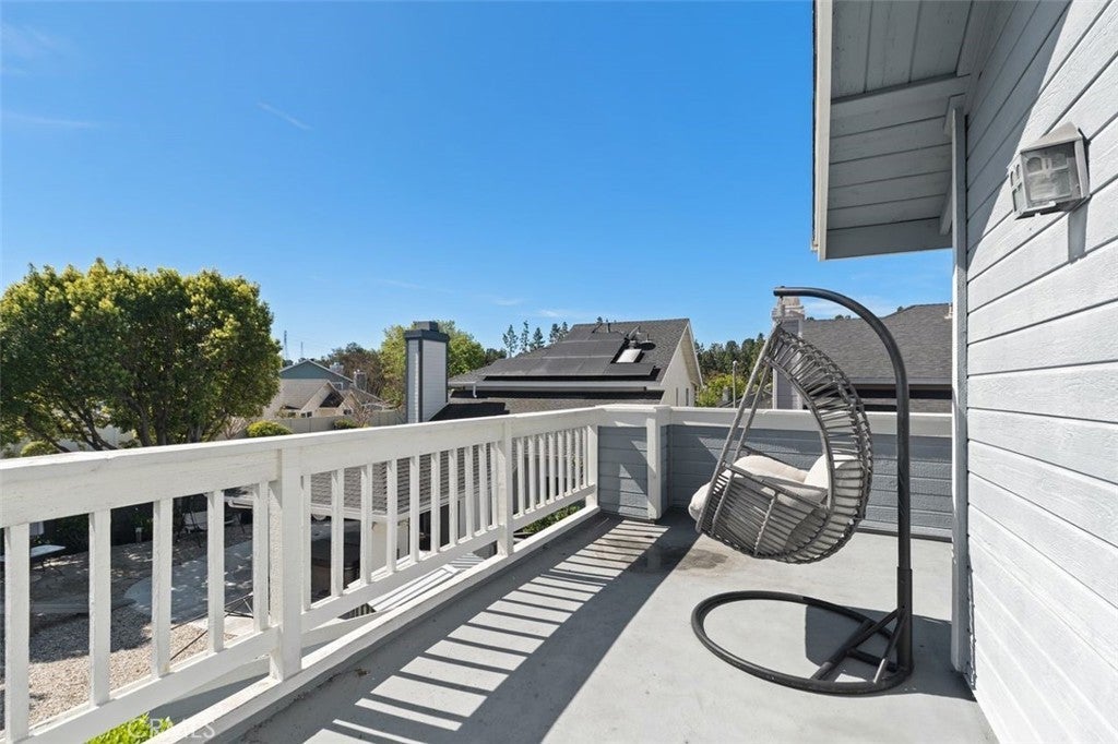 Imagine starting your morning with coffee on your private wrap-around deck overlooking the peaceful cul-de-sac, then ending the evening beside a glowing saltwater pool under two illuminated gazebos. Tucked away on a quiet cul-de-sac, this beautifully updated home offers the perfect blend of privacy, comfort, and Southern California indoor-outdoor living. With 4 bedrooms (or 3 plus a dedicated office), the flexible floor plan adapts effortlessly to modern lifestyles. A main-level bedroom or den is ideal for guests, a home office, or multi-generational living. Elegant marble flooring throughout the main level creates a bright, sophisticated feel while remaining naturally cool year-round. Upstairs bedrooms feature ultra-plush carpeting, adding warmth and comfort to the private living spaces. The primary suite serves as a peaceful retreat, highlighted by a rare wrap-around private deck overlooking the quiet cul-de-sac and front yard. The updated kitchen features granite countertops, new stainless-steel appliances, and a charming bay window, opening to spacious living areas including a formal dining space and a living room with vaulted ceilings, abundant natural light, and a cozy gas fireplace. Step outside to your resort-style backyard, where the saltwater pool and dual lighted gazebos create the perfect setting for entertaining, weekend barbecues, or relaxing evenings under the stars. The generous lot offers plenty of space to garden, play, or simply enjoy the outdoor setting. Recent upgrades provide peace of mind and modern convenience, including new HVAC, furnace, and ducting, a pool enclosure, and new stainless-steel kitchen appliances. The garage includes an electric vehicle charger and built-in storage. This home has been thoughtfully maintained and updated over the years, reflecting true pride of ownership and making it move-in ready for its next chapter. The beautifully landscaped yard features navel orange trees, dragon fruit trees, and vibrant year-round plantings, creating a lush and inviting outdoor environment. Ideally located in a desirable neighborhood with two school options, the home offers convenient access to the 73 Toll Road, Laguna Beach via the scenic 133, Irvine Spectrum shopping and dining, Sheep Hills Park, and the Aliso Creek bike trail. A rare opportunity to own a private cul-de-sac retreat designed for both everyday living and memorable gatherings.
