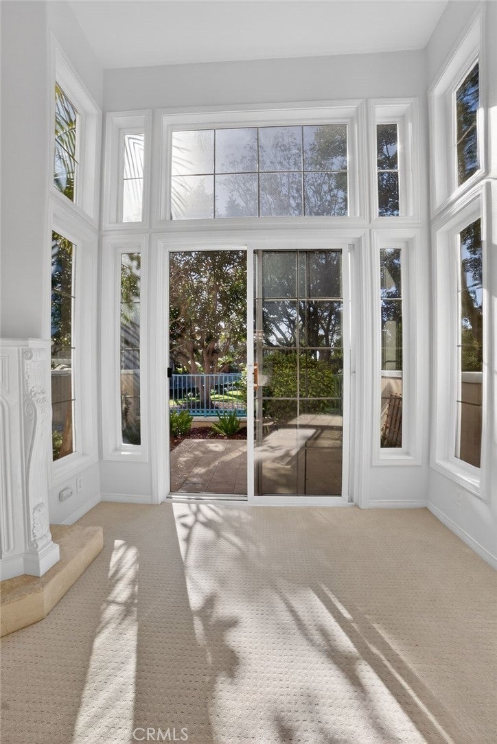 Located in the prestigious gated community of Newport Ridge Vistas in the heart of Newport Coast, this beautifully appointed 3 bedroom, 2 bath residence offers approximately 2,200 square feet of light-filled living space and an exceptional indoor-outdoor lifestyle. Ideally positioned with a large greenbelt directly in front, the home enjoys an open, private setting with no homes immediately across. Soaring two-story ceilings, crown molding, and a dramatic living room with marble fireplace create an impressive first impression. The gourmet kitchen features double ovens, abundant cabinetry, generous pantry space, and flows seamlessly into the dining and family areas for effortless entertaining. The luxurious primary suite includes its own romantic fireplace, two walk-in closets, and a spa-inspired bath with dual vanities, soaking tub, and separate shower. Both secondary bedrooms are generously sized. A rare highlight is the presence of three private balconies with serene views, offering multiple outdoor retreats to enjoy coastal breezes and sunset skies. Additional features include inside laundry, oversized two-car attached garage with extensive storage, and a spacious entertainer’s patio perfect for gatherings and BBQs. Resort-style HOA amenities include pool, spa, tennis, basketball courts, parks, playgrounds, and proximity to the Newport Coast Community Center. Just minutes to Fashion Island, The Resort at Pelican Hill, beaches, John Wayne Airport, and award-winning schools. Coastal luxury living at its finest.