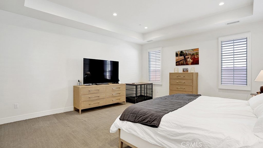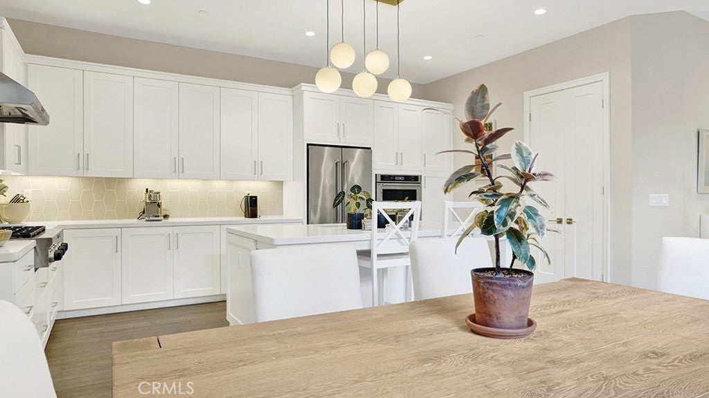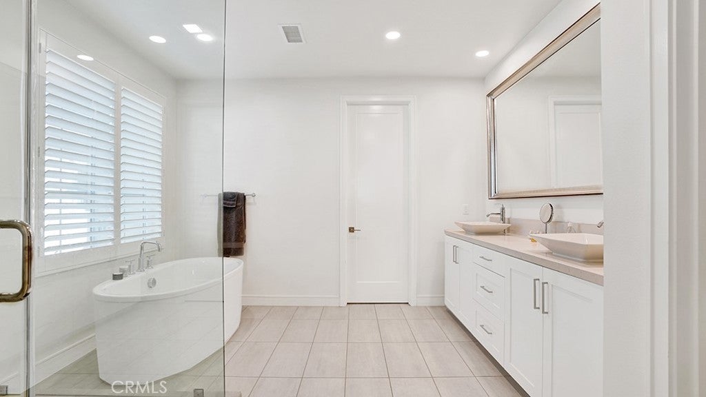 Indulge in a lifestyle of unmatched elegance within the prestigious gated community of Barcelona. This stunning, highly upgraded detached residence welcomes you with a modern open-concept floor plan, highlighted by designer laminate flooring and sophisticated LED lighting throughout. At the heart of the home lies a show-stopping gourmet kitchen, a chef’s dream featuring premium KitchenAid commercial-grade appliances, a massive quartz center island with a full backsplash, and soft-close cabinetry. For seamless indoor-outdoor living, the great room’s panoramic sliding glass doors disappear to reveal a private, serene patio—perfect for relaxation or morning coffee. Practicality meets luxury with a sought-after main-floor bedroom and full bath, providing the ideal setup for guests or a home office. Upstairs, the versatile loft offers a secondary living space, while the palatial primary suite serves as a true sanctuary with its deep soaking tub, separate walk-in shower, and expansive walk-in closet. No detail has been overlooked, from the custom electric Hunter Douglas shades and classic shutters to the dedicated upstairs laundry room complete with a sink and ample storage. Beyond your front door, enjoy resort-caliber amenities including a pool, spa, and the extensive parks, tennis courts, and sports fields of Los Olivos. Perfectly situated for the modern commuter, you are minutes from the Irvine Spectrum’s world-class dining and shopping, with effortless access to the 405, 5, and 133 freeways.
