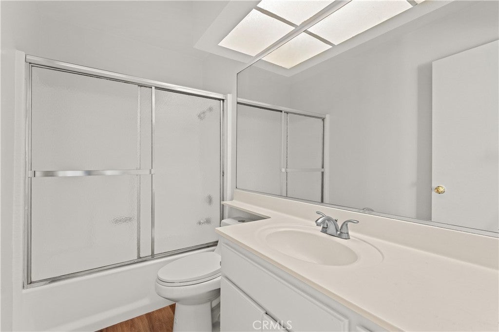 Welcome to this beautifully updated upper-level condominium located in a desirable gated community in Corona. This light-filled 2-bedroom, 2-full-bath home features soaring cathedral ceilings that create an open and airy living environment rarely found at this price point. The interior has been thoughtfully refreshed with brand-new flooring throughout, fresh paint, and numerous upgrades including a new stove, microwave, toilets, thermostat, updated plumbing, and all new window blinds—making this home truly move-in ready. Comfort is ensured year-round with central air conditioning. Enjoy the convenience of a private garage plus a second assigned parking space. Located within a secure gated community with easy access to shopping, dining, commuter routes, and local amenities, this home combines comfort, convenience, and turnkey living. Perfect for first-time buyers, downsizers, or investors seeking a low-maintenance property in a prime Corona location.