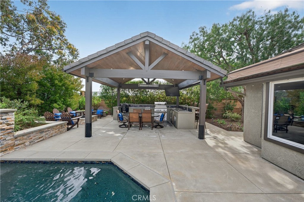 Experience a residence where no detail was overlooked and no compromise was made. This meticulously maintained single-level pool home defines modern luxury. At the heart of the home, a gourmet chef’s kitchen awaits, featuring a premium appliance suite including a Wolf 6-burner range, GE Monogram double convection ovens, Bosch dishwasher and GE Monogram 42” built-in refrigeration. The primary bedroom offers a spa-like ensuite with rain-shower fixtures, walk-in closet and seamless access to the grounds via elegant French doors. Additional interior features include custom Loewen casement windows, dual-zoned HVAC (installed in 2025), and a dedicated office featuring sound-absorbing panels and custom workstations. Transitioning outdoors, the property transforms into a private resort. An expansive outdoor kitchen — equipped with DCS Series 9 grilling tech, Pit Boss Kamado, and Infratech heaters—overlooks a pristine PebbleTech pool and spa. With an owned 22-panel solar system plus a 12-panel pool solar heat system, security system, this turnkey estate is as smart as it is beautiful. Ask your agent for a full features list. Welcome home.