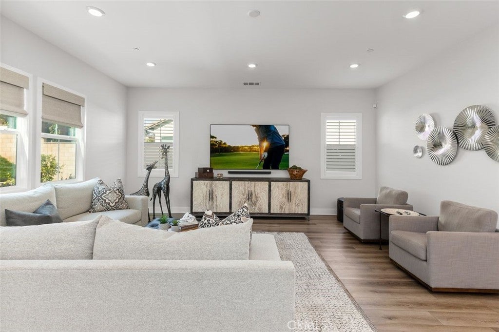 Introducing San Juan Capistrano’s newest gated enclave, this exquisitely upgraded, recently completed 2022 residence offers 4 bedrooms plus a main-level office and upstairs loft, where architectural beauty and modern comforts converge effortlessly. Featuring a stunning oversized island kitchen with sleek stainless steel appliances, quartz countertops, a striking sapphire backsplash, and a spacious walk-in pantry, the kitchen flows seamlessly into an open-concept living and dining great room illuminated by recessed lighting throughout—designed for both grand entertaining and intimate gatherings. A highly desirable main-level bedroom with full bath offers flexibility for guests or multigenerational living, while the dedicated downstairs office provides the perfect work-from-home retreat. Upstairs, the spacious loft creates an additional lounge or media haven, complemented by the convenience of an upstairs laundry room. The grand primary suite is a true sanctuary, featuring a generously proportioned bedroom retreat, two walk-in closets, and a spa-inspired bath with an expansive dual-sink vanity, a freestanding soaking tub, and an oversized walk-in shower—designed for indulgent relaxation. Plantation shutters throughout—along with custom blinds in the family room—add a refined architectural touch and timeless elegance. Step outside to a large backyard, beautifully landscaped with highly upgraded finishes, featuring an integrated covered patio with recessed lighting and a built-in stainless steel fireplace, creating a seamless indoor-outdoor entertaining experience. Residents also enjoy exclusive access to a sparkling resort-style pool and beautifully curated neighborhood parks. Perfectly positioned between the coastal allure of Dana Point Harbor and the nearby beaches, as well as the historic vibrance of downtown San Juan Capistrano—home to the iconic Mission San Juan Capistrano and the newly completed River Street Marketplace, offering an exciting mix of dining, entertainment, and boutique shopping—this storybook setting delivers sophisticated coastal living with award-winning schools nearby, including St. Margaret’s Episcopal School, JSerra Catholic High School, and St. Anne School, all within moments of a community and home that feel modern, vibrant, and truly exceptional.
