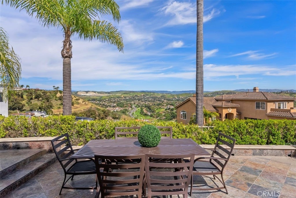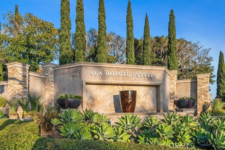 Captivating Views from this Prestigious Sea Pointe Estates property! Perched high on a hill in the exclusive guard-gated community of Sea Pointe Estates, this custom 5-bedroom, 5.5-bath estate offers privacy, elegance, and panoramic views. Situated on a single-loaded street on a unique triangular lot, back stree is a cul-de-sac the setting provides exceptional privacy and stunning surroundings. Designed with an open-concept layout, the home features a main-floor primary suite, executive office, and spacious 3-car garage—all at street level. Formal living and dining rooms share a beautiful fireplace, complemented by a warm and inviting family room and a chef’s kitchen built for entertaining. The kitchen boasts a massive island, stainless steel appliances, an oversized built-in side-by-side refrigerator, a commercial-grade gas range with ovens, new white cabinetry, and black granite countertops. Seamlessly blending indoor and outdoor living, the kitchen opens to a covered outdoor kitchen and dining area. The expansive wraparound yard is finished in elegant slate with water features, lush tropical landscaping, and garden areas. Enjoy ocean breezes along with sweeping hill and mountain views, plus a peek-a-boo ocean view. All additional bedrooms offer privacy, each with its own bathroom and direct access to exterior living spaces. Every room in this remarkable estate enjoys a view, making it a true entertainer’s paradise. Community amenities further elevate the lifestyle this exceptional property provides. Conveniently located to dining, shopping, freeway, and much more. Minutes from downtown San Clemente, Dana Point, and San Juan Capistrano.