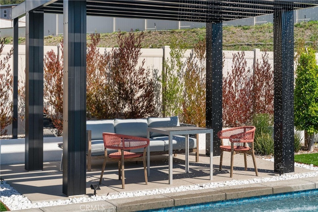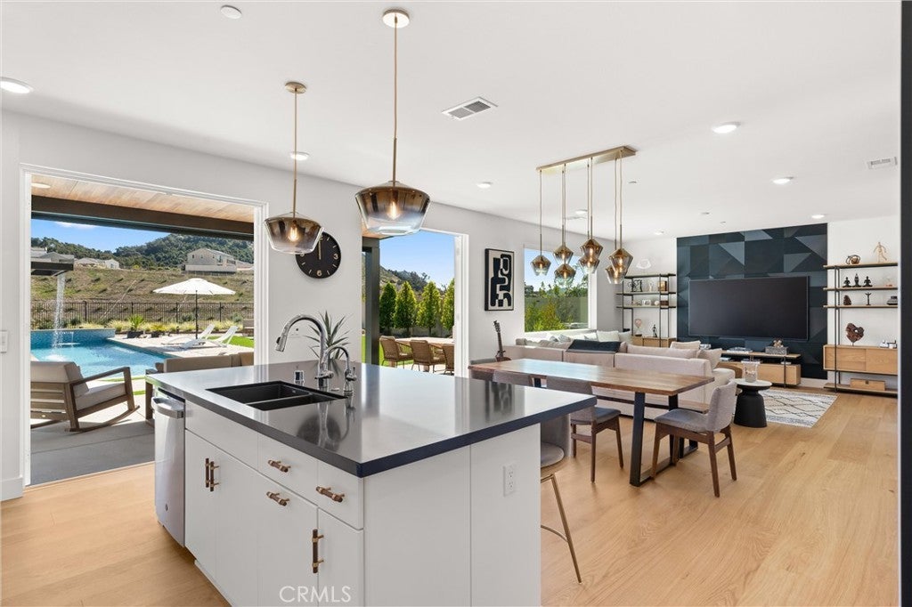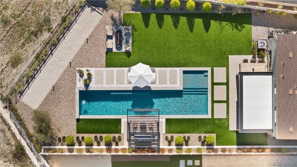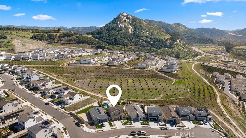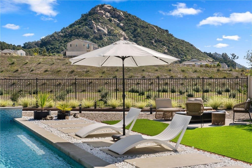 Welcome to 333 Canter Ct—an exceptional Fallbrook residence positioned on what is widely considered one of the most premium lots in the community. Backing to an orchard and framed by a dramatic mountain backdrop, this property captures expansive, far-reaching views that feel truly other-worldly, with a sense of space and privacy that is rarely available. A unique advantage of this location is the added privacy created by single-story neighboring homes, enhancing view corridors and openness—especially from the upper level. Inside, the home is light, bright, and thoughtfully finished throughout with a clean, modern aesthetic. The open-concept layout is complemented by wide-plank flooring, abundant natural light, and designer lighting. The kitchen is a standout with generous cabinetry, a large center island with seating, and stylish pendant fixtures—opening seamlessly to the dining and living areas for easy everyday living and entertaining. Additional highlights include a modern feature wall in the living space, well-proportioned bedrooms, and flexible-use space ideal for an office, lounge, or media room. Outside is where this property truly sets itself apart. The backyard is stunning, beautifully executed, and impeccably designed for both everyday enjoyment and entertaining. A rare lap pool takes center stage, enhanced by striking water features including a dramatic waterfall element, plus a spacious Baja shelf for lounging and play. Multiple other outdoor zones include a modern fire pit lounge area, generous turf and hardscape, and a Bocce ball court, underscoring the exceptional usability of the lot and the sense of space this home offers. Beyond the home, residents enjoy outstanding community amenities including approximately 14 miles of trails, a clubhouse/meeting room, pool and spa, and a community garden. Conveniently located near local shopping, dining, and everyday essentials, this is a rare opportunity to secure a standout view property with an unmatched setting.