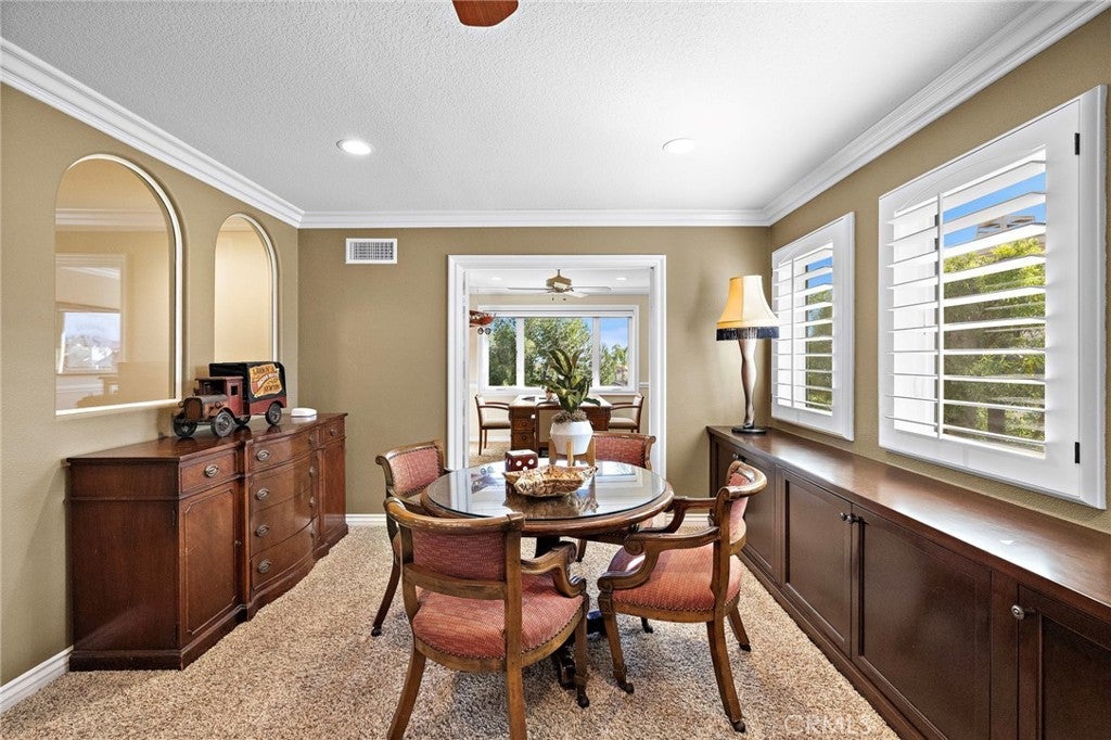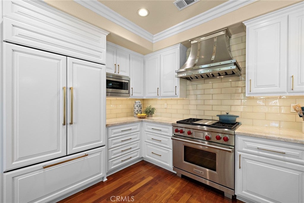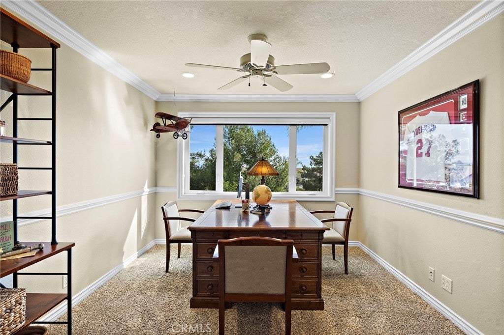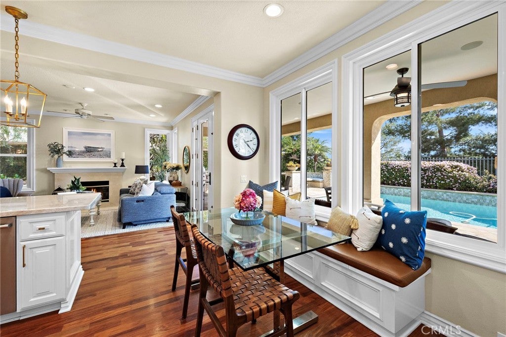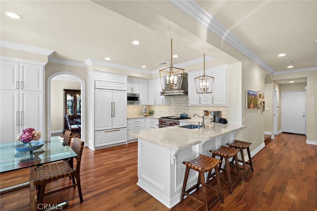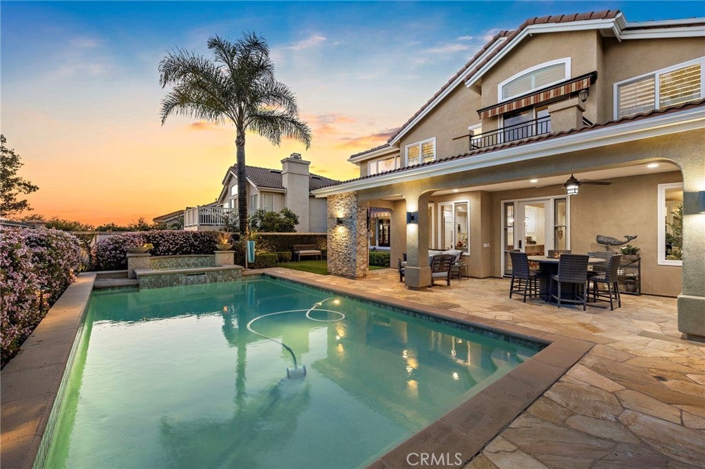 Welcome to this beautifully upgraded and meticulously maintained home located in the highly sought after community of Foothill Ranch. This STUNNING POOL HOME features 5 bedrooms, 3.5 bathrooms, a large loft, and an additional bonus room ideal for a second office, homeschooling, or creative use. The open floor plan is filled with natural light and includes wood flooring throughout the main level. A convenient downstairs bedroom, currently used as an office, provides added flexibility. The fully remodeled chef’s kitchen offers a SUB-ZERO refrigerator with wood panel doors, 36" WOLF range, custom range hood, BOSCH dishwasher, and TAJ MAHAL QUARTZITE countertops, and it opens seamlessly to the family room. MILGARD windows throughout the home enhance natural light and energy efficiency. Upstairs, the expansive loft provides space for a media room, playroom, or additional workspace. All bathrooms have been tastefully updated with modern finishes. The primary bedroom deck offers beautiful views, including sunset views and CITY LIGHTS at night. The CALIFORNIA ROOM provides year round indoor and outdoor living with space for dining and lounging. The resort style backyard features a sparkling pool and spa, fire pit, built in BBQ, and generous entertaining areas. Additional upgrades include an updated HVAC system, whole house attic fan, whole house water filtration system, and epoxy flooring with built in storage cabinets in the three car garage, all contributing to enhanced comfort, convenience, and efficiency. With thoughtful upgrades, flexible living areas, scenic views, and a resort style outdoor setting, this home offers an exceptional Southern California lifestyle in one of Foothill Ranch’s most desirable neighborhoods.