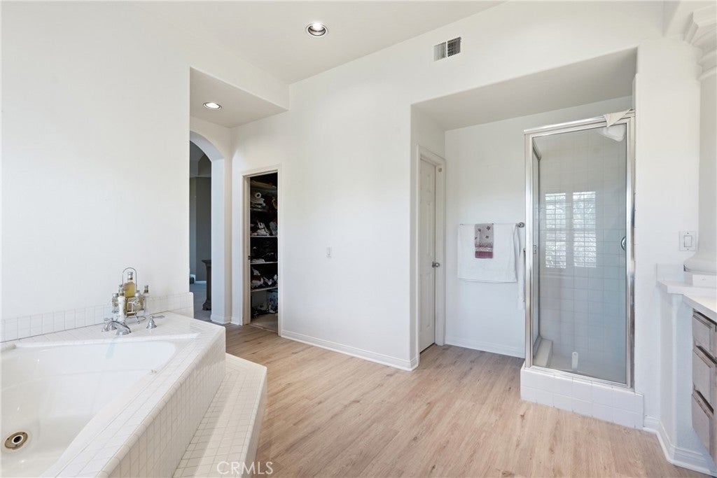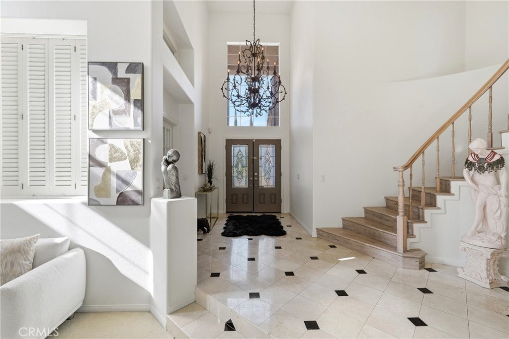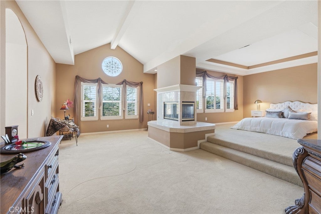 Welcome to one of the most desirable locations in Moulton Ranch, featuring a beautiful rose garden and exceptional curb appeal. This 4,000 sq. ft. custom home sits on a 7,000 sq. ft. lot and offers an impressive open-flow layout with 5 bedrooms, an office, and a large loft. The residence includes two primary suites, one conveniently located on the main level, along with a dedicated office. Enjoy vaulted ceilings, a marble-entry foyer, an upstairs bonus room, and a formal dining room that opens to a spacious family room with a full bar. The kitchen features hardwood cabinetry and marble countertops, overlooking peaceful natural views. Additional highlights include a luxurious living room with a fireplace, wood floors, custom crown molding, and a primary suite retreat with two walk-in closets and a Jacuzzi tub. A laundry room and a three-car garage complete this exceptional home.