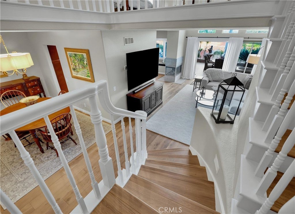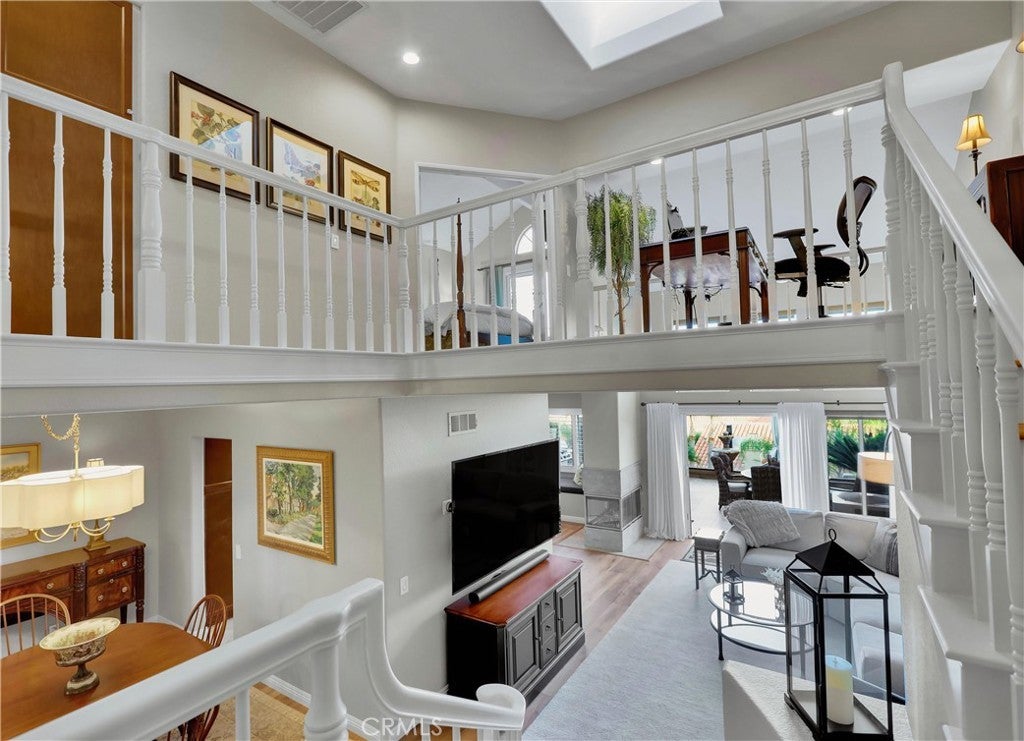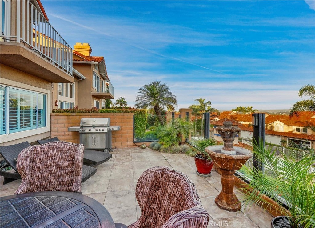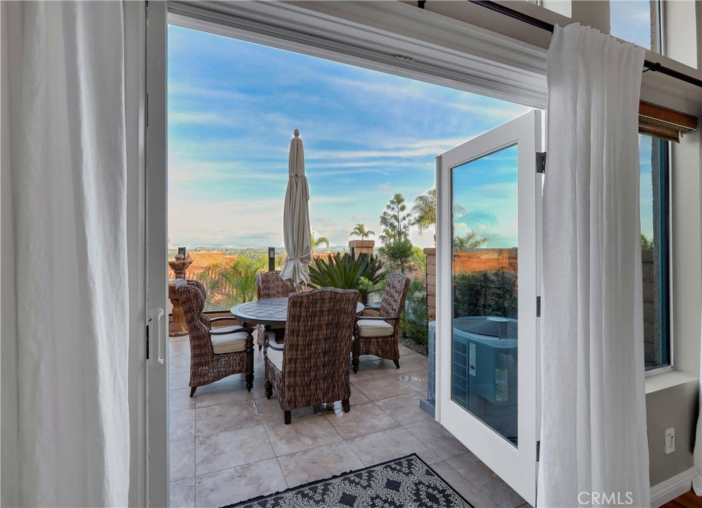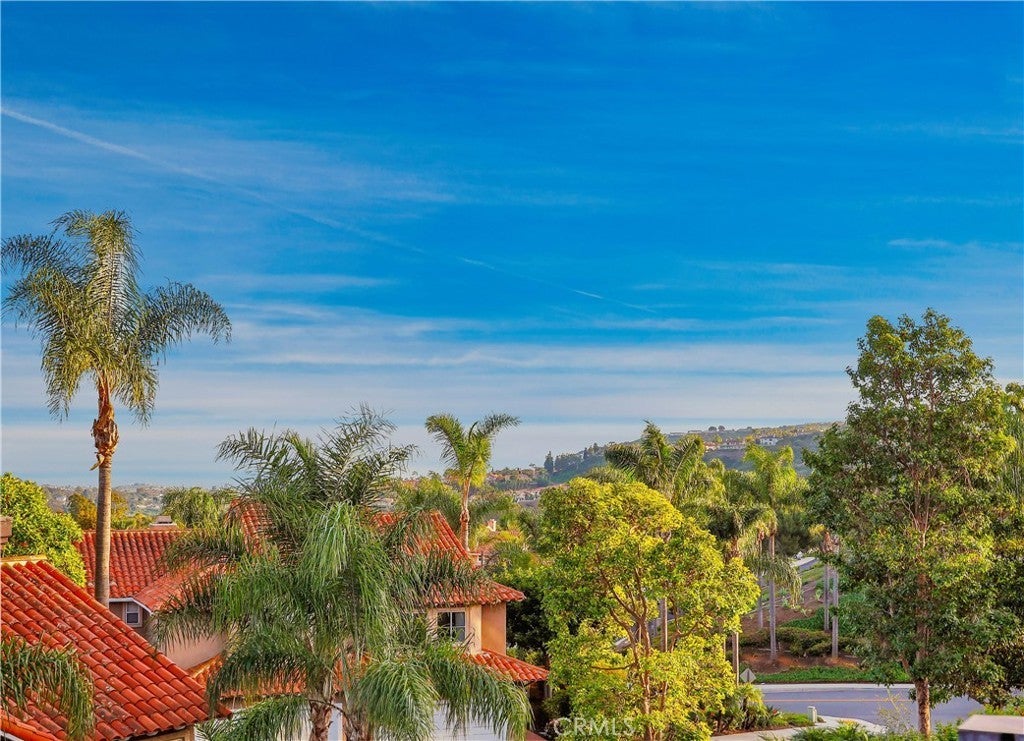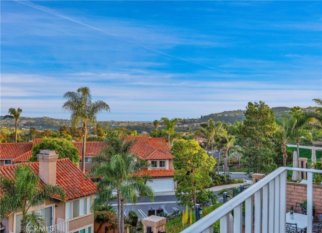 Located in the sought-after Jamaica community on a quiet single loaded street, perched high in Niguel Summit with spectacular panoramic ocean, city lights, and Saddleback Mountain views, this beautifully updated home is the perfect example of pride in ownership. Soak in the light filled interior with two-story ceilings, luxurious wood and travertine floors, plantation shutters, and an open concept floor plan setting the stage for an ideal living environment. Pass through the formal dining area, with an elegant new Chandelier, to the living room with sit down panoramic views, an inviting 3-sided fireplace, and new French doors opening to the back patio creating the perfect indoor-outdoor living space. The handsome kitchen boasts warm upgraded cabinetry, Granite countertops, custom tiled backsplash, updated hardware, Stainless Steel appliances, undercabinet lighting, and is open to the breakfast nook with window seating. A perfect gathering space for morning coffee in front of the cozy 3-sided fireplace. Travel up the staircase, filled with natural light from the skylight above, to the open loft, a flexible space perfect for a home office or home library. The primary suite is a peaceful retreat with vaulted ceilings, 2 closets with mirrored closet doors, and a beautifully updated primary bathroom with dual Granite topped vanity, framed vanity mirrors, updated lighting and hardware, and an oval soaking tub. You will adore the private outdoor balcony taking full advantage of the amazing views, a romantic setting for an evening glass of wine with a loved one. This floor plan includes a 2nd-bedroom suite with high ceilings and a private en-suite bathroom. The tiled backyard patio is a tranquil oasis with manicured landscaping, a new automated irrigation system, and glass fencing, a spectacular setting for relaxing while enjoying cool ocean breezes and breathtaking views! Fine features include HVAC with SEER 16+ rating, Newer Water Heater, New ceramic solar tinted windows, Pelican whole-house water filtration/softener & reverse osmosis system, Nest thermostat, Lutron Casetta Wi-Fi based light switches, new Arlo security cameras, and motorized blinds. 2 car garage with epoxy floors, built-in storage, and overhead racks. Community Pool and spa. Numerous hiking and biking trails throughout neighboring Aliso Creek trail. Close to world-class resorts, golfing, shopping, dining, and just minutes from local beaches & Dana Point Harbor.