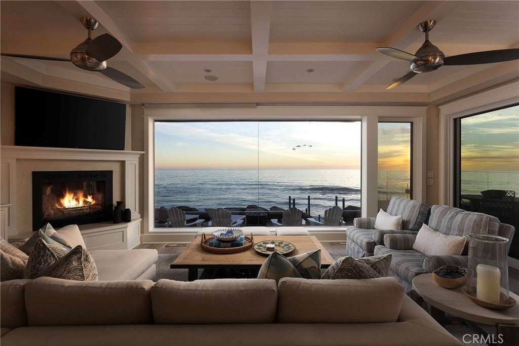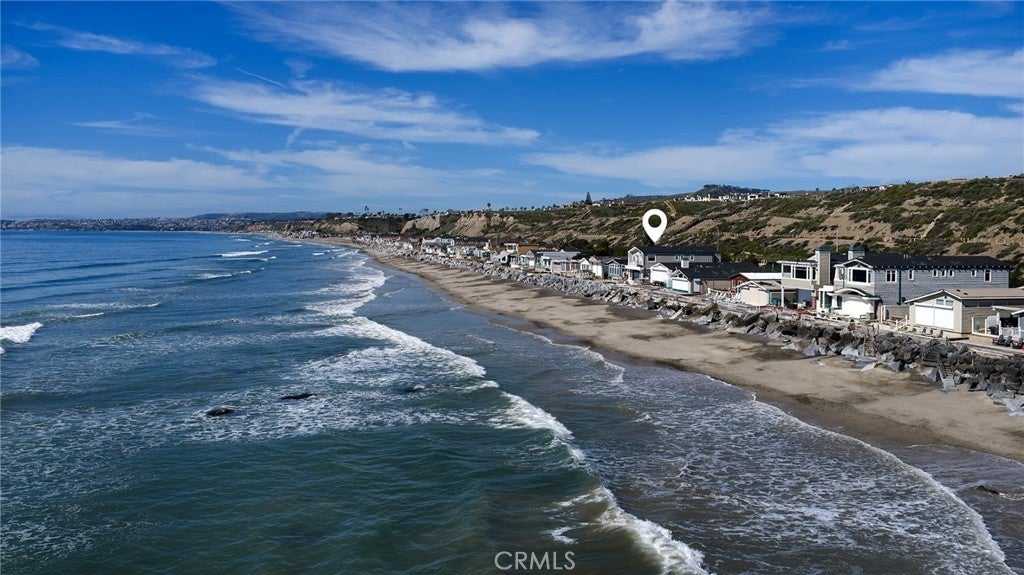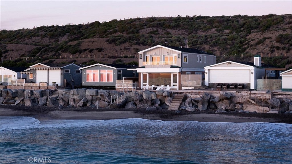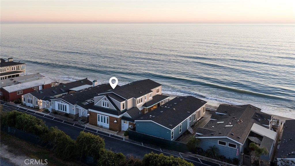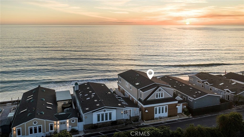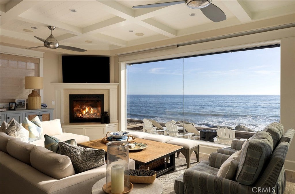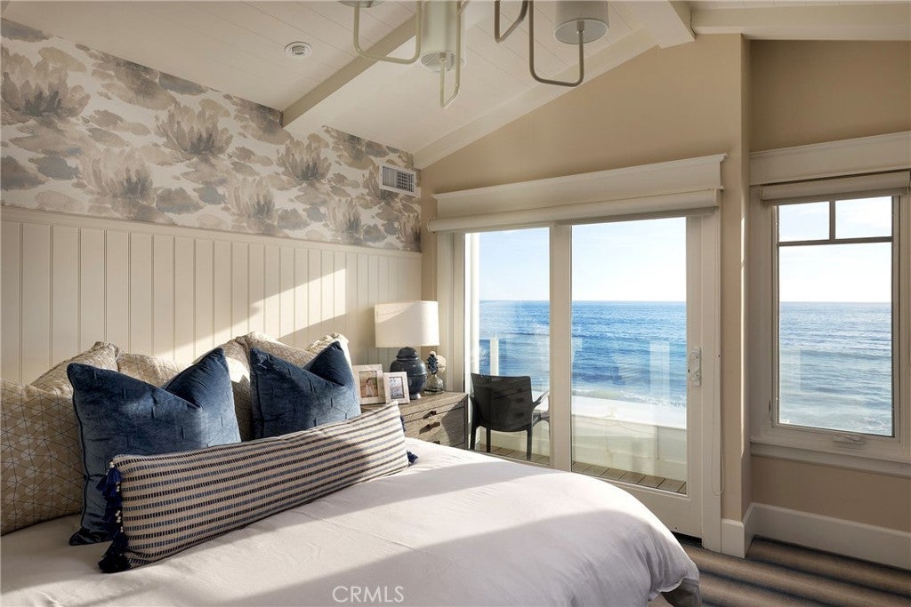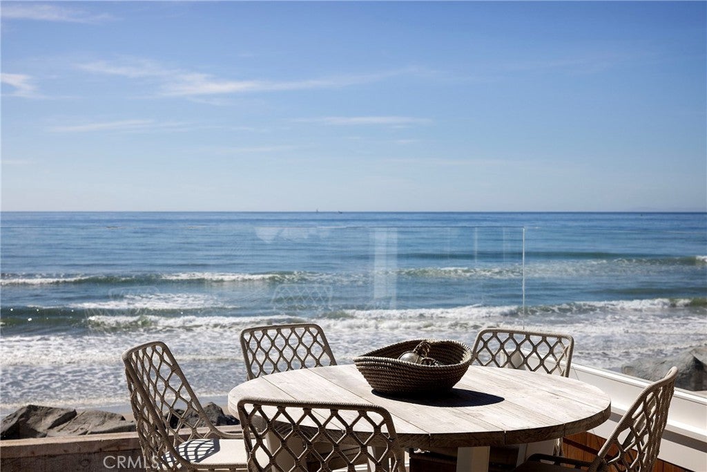 Drawing inspiration from the great shingled estates of Cape Cod yet firmly rooted on the sands of San Clemente, this oceanfront residence in Capistrano Shores is a study in craftsmanship, proportion, and restraint. Set directly at the water’s edge, both levels command sweeping views of the Pacific, Catalina Island, the harbor, pier, and coastline stretching north and south. Spanning nearly 3,000 square feet with six bedrooms and five baths, the home is composed for legacy living, generous in scale and intentional in every line. Arrival unfolds along a gated side approach, creating a refined transition to the interior, while the rear oceanfront terrace becomes the true centerpiece with honed travertine underfoot, a private sandy lounge area, and dedicated stairs descending directly to the beach. A pass-through kitchen window, outdoor shower, and convenient bath access create a seamless exchange between sea and interior. Inside, a Dutch door opens to light-filled living spaces defined by coffered ceilings, tailored millwork, and a commanding picture window that frames the Pacific as living artwork. The kitchen has been thoughtfully reimagined with satin Taj Mahal quartzite, custom cabinetry, integrated beverage drawers and ice maker, an Ann Sacks tile backsplash, and an apron-front sink, refined and understated, designed for gathering. Whitewater Oak LVP flooring unifies the home. Brazilian quartzite defines the butler’s bar and laundry, while labradorite granite lends depth to the upstairs guest bath. Of the two oceanfront primary suites, one bath is appointed in satin Taj Mahal quartzite and a Toto toilet, while the other features crema marfil marble countertop with dual sinks. Each primary suite opens to its own private balcony suspended above the horizon. Vaulted ceilings crown the upper level, where a bonus lounge and custom bunk rooms provide flexible accommodations without sacrificing architectural cohesion. Plantation shutters, curated stone selections, and bespoke built-ins reinforce the home’s sense of permanence. Automatic exterior shades and storm shutters integrate protection discreetly into the architecture, preserving clean lines and uninterrupted views. Capistrano Shores remains one of San Clemente’s most iconic oceanfront enclaves, moments from surf breaks, coastal trails, and downtown, yet wonderfully removed. A legacy residence at the edge of the Pacific, where architecture and horizon exist in deliberate balance.