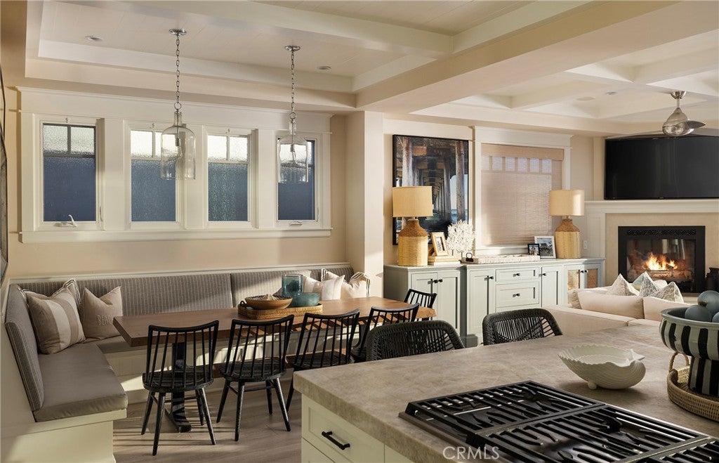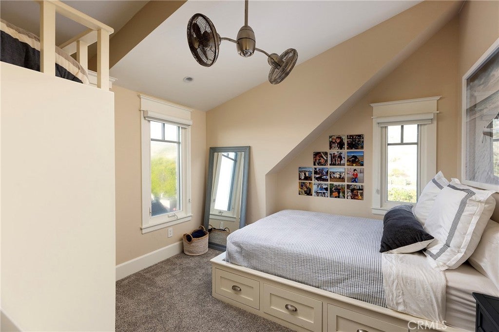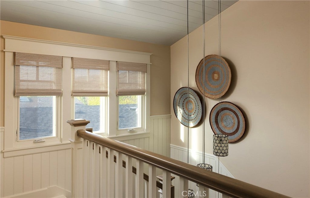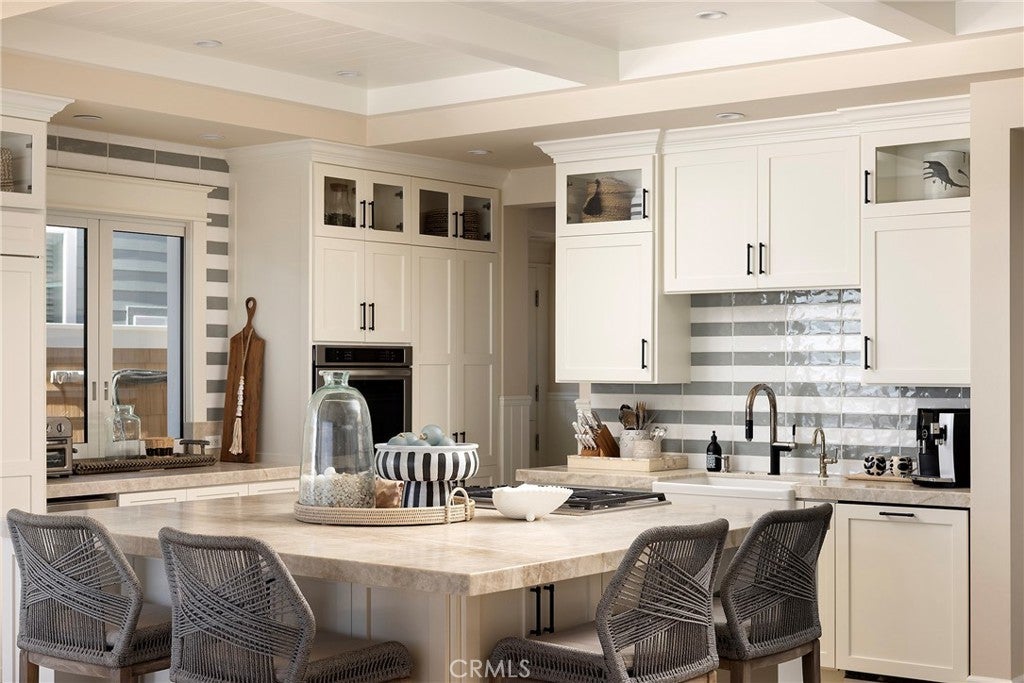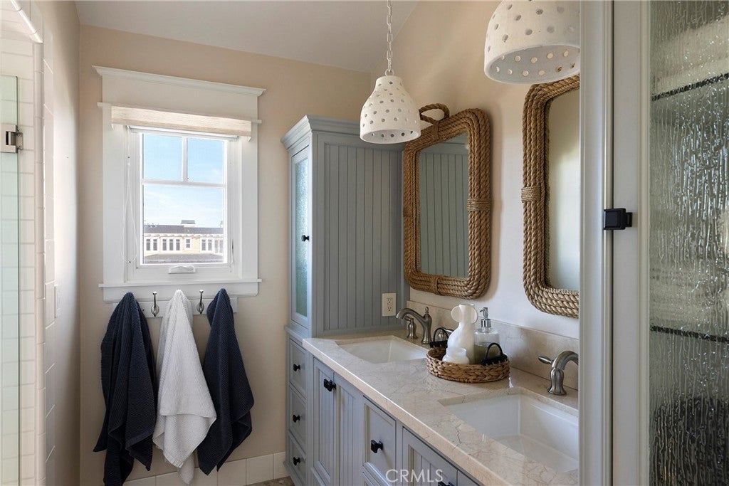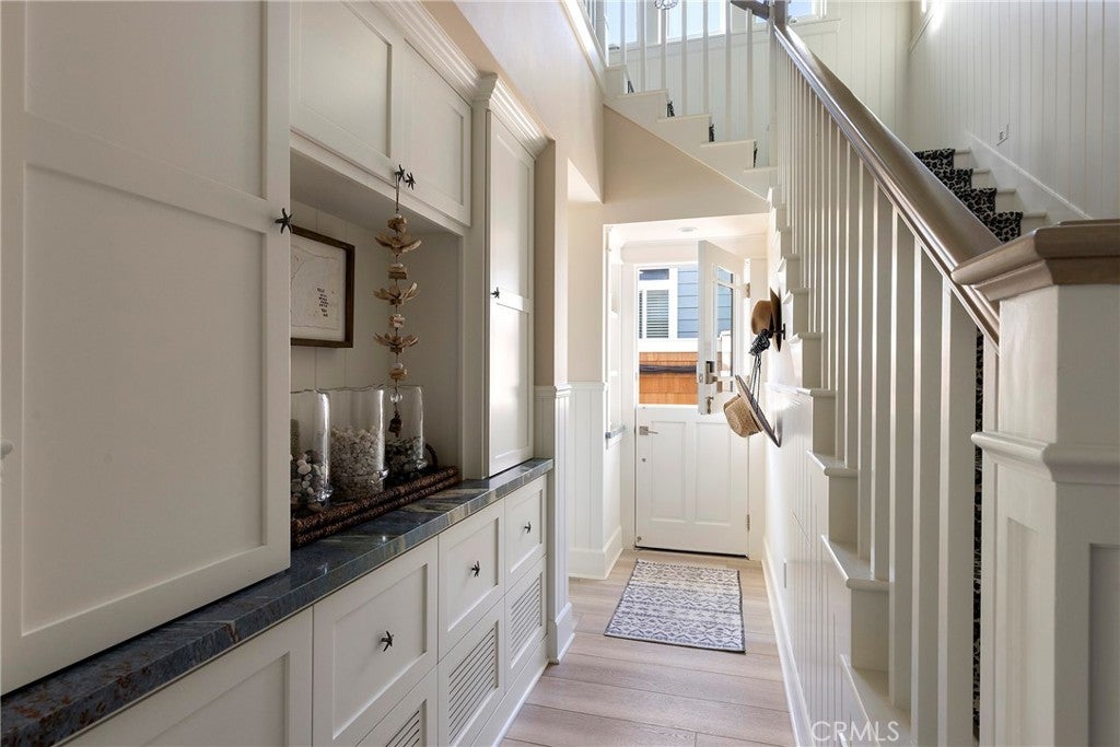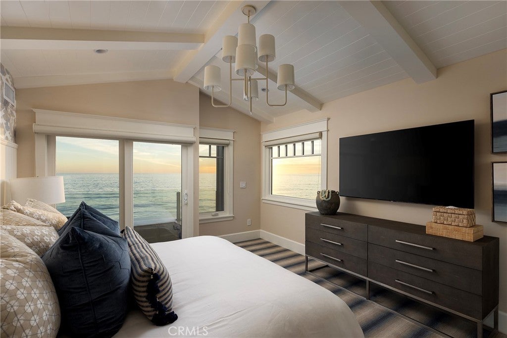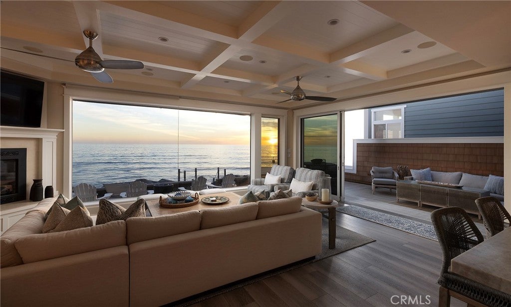 Drawing inspiration from the great shingled estates of Cape Cod yet firmly rooted on the sands of San Clemente, this oceanfront residence in Capistrano Shores is a study in craftsmanship, proportion, and restraint. Set directly at the water’s edge, both levels command sweeping views of the Pacific, Catalina Island, the harbor, pier, and coastline stretching north and south. Spanning nearly 3,000 square feet with six bedrooms and five baths, the home is composed for legacy living, generous in scale and intentional in every line. Arrival unfolds along a gated side approach, creating a refined transition to the interior, while the rear oceanfront terrace becomes the true centerpiece with honed travertine underfoot, a private sandy lounge area, and dedicated stairs descending directly to the beach. A pass-through kitchen window, outdoor shower, and convenient bath access create a seamless exchange between sea and interior. Inside, a Dutch door opens to light-filled living spaces defined by coffered ceilings, tailored millwork, and a commanding picture window that frames the Pacific as living artwork. The kitchen has been thoughtfully reimagined with satin Taj Mahal quartzite, custom cabinetry, integrated beverage drawers and ice maker, an Ann Sacks tile backsplash, and an apron-front sink, refined and understated, designed for gathering. Whitewater Oak LVP flooring unifies the home. Brazilian quartzite defines the butler’s bar and laundry, while labradorite granite lends depth to the upstairs guest bath. Of the two oceanfront primary suites, one bath is appointed in satin Taj Mahal quartzite and a Toto toilet, while the other features crema marfil marble countertop with dual sinks. Each primary suite opens to its own private balcony suspended above the horizon. Vaulted ceilings crown the upper level, where a bonus lounge and custom bunk rooms provide flexible accommodations without sacrificing architectural cohesion. Plantation shutters, curated stone selections, and bespoke built-ins reinforce the home’s sense of permanence. Automatic exterior shades and storm shutters integrate protection discreetly into the architecture, preserving clean lines and uninterrupted views. Capistrano Shores remains one of San Clemente’s most iconic oceanfront enclaves, moments from surf breaks, coastal trails, and downtown, yet wonderfully removed. A legacy residence at the edge of the Pacific, where architecture and horizon exist in deliberate balance.