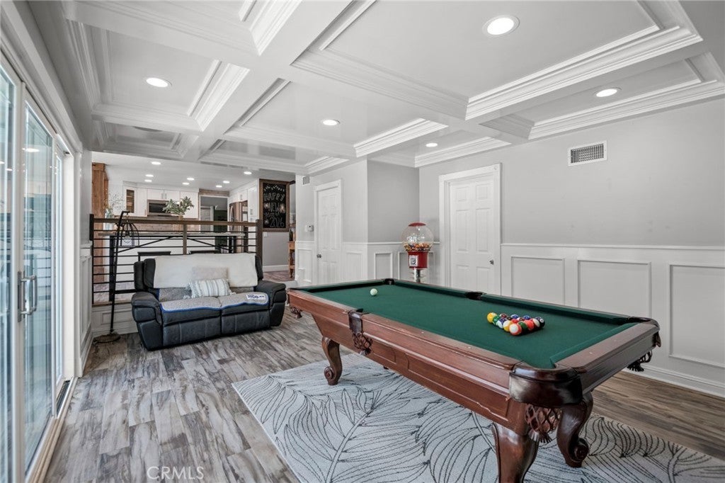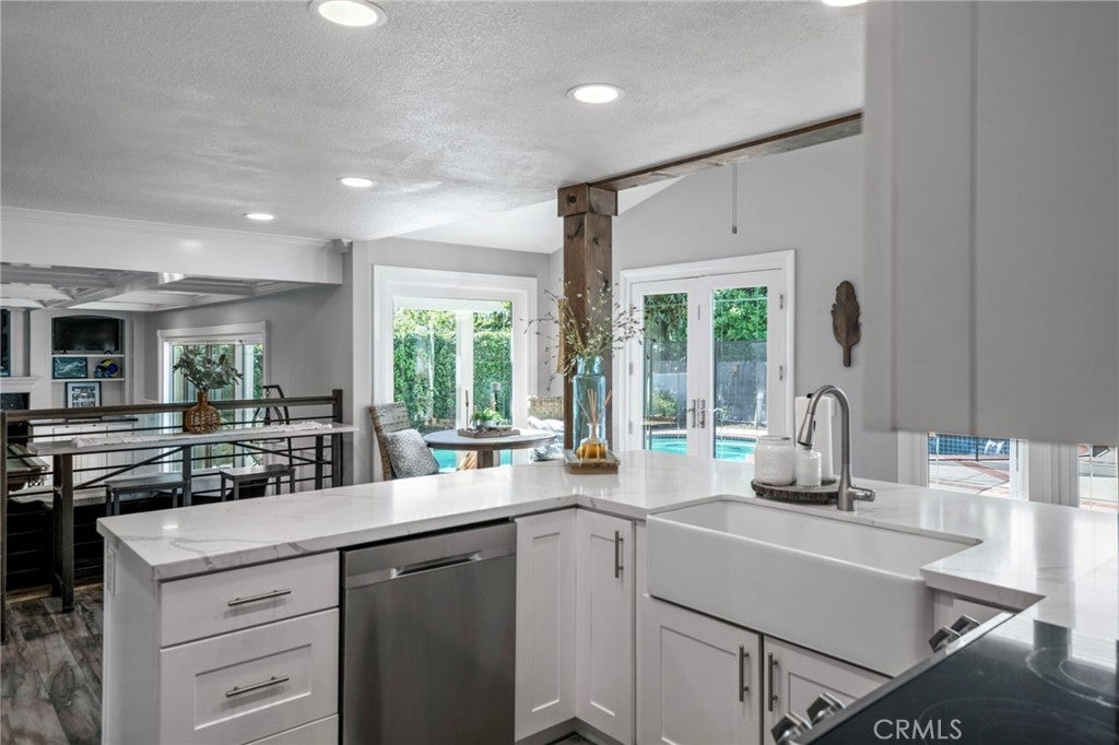 This 5-bedroom, 4.5-bathroom turnkey home in the heart of Mission Viejo is a must see, offering exceptional space, flexibility, and access to the highly sought-after amenities of Lake Mission Viejo. Ideally located near Mission Viejo High School, the home is thoughtfully designed for both everyday living and entertaining with a versatile floor plan and seamless indoor-outdoor flow. The main level includes two bedrooms, highlighted by a private primary suite with en-suite bath, along with an additional full bathroom and powder room — an ideal setup for guests, multigenerational living, or a dedicated home office. Formal living and dining rooms create welcoming spaces for gatherings, while abundant natural light, plantation shutters, dual-pane windows, and surround sound enhance the home’s warm and inviting atmosphere. The remodeled kitchen features quartz countertops, stainless steel appliances, and a breakfast bar that opens to the main living areas, creating a functional and connected space for daily living and entertaining. Upstairs, three additional bedrooms include a spacious primary suite offering comfort and privacy. Designed for Southern California living, the backyard features a private pool, BBQ island with bar seating, and a fully enclosed gazebo perfect for an office, gym, playroom, or flexible bonus space. A front-yard firepit provides an additional outdoor gathering area ideal for relaxing evenings. Recent improvements include new carpet, a remodeled downstairs bathroom, and a new water heater. TVs and a pool table are included. Residents enjoy exclusive Lake Mission Viejo membership with access to beaches, boating, concerts, and year-round community events.