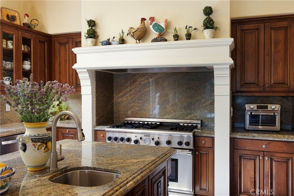 - AppliancesSixBurnerStove, Barbecue, Double Oven, Dishwasher, Freezer, Disposal, Gas Range, Microwave, Refrigerator, Range Hood, Vented Exhaust Fan, Warming Drawer
