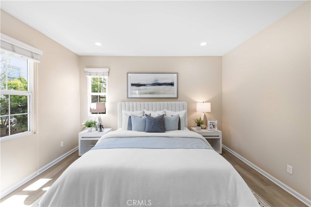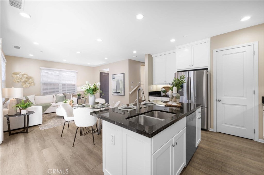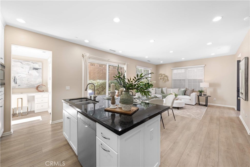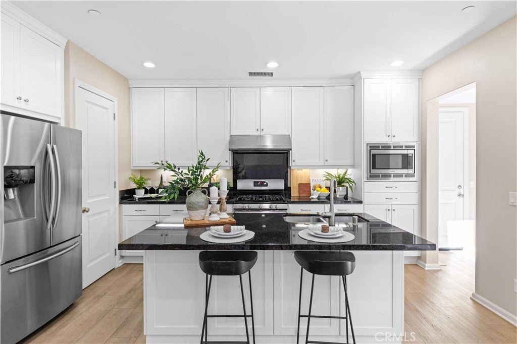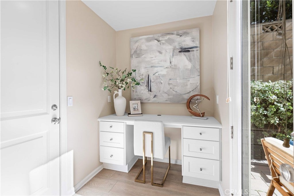 Located in the highly sought-after Cypress Village community in Irvine, this desirable corner two-story home offers excellent privacy with no shared living walls and a prime location within walking distance to the neighborhood park and elementary school. One of the standout features of the home is the versatile upstairs loft, offering flexible space ideal for a family room, home office, or study area, complete with a row of built-in cabinets for additional storage. The main level features a bright open-concept living and kitchen layout, perfect for both everyday living and entertaining. The upgraded kitchen includes ceiling-height cabinetry, quartz countertops, a large center island, and a walk-in pantry. Just off the kitchen is direct access to the garage, along with a built-in desk area that also has a door leading to the backyard, creating a convenient workspace with easy outdoor access. The living room opens to the private backyard, providing a comfortable outdoor space ideal for family use. Upstairs, in addition to the loft, there are three bedrooms, including a primary suite with a modern bathroom featuring a walk-in shower. The primary bedroom enjoys a southeast-facing orientation, bringing in abundant natural light while maintaining privacy from neighboring homes. Two additional bedrooms are generously sized and share a Jack-and-Jill bathroom. With its functional layout, thoughtful upgrades, and location in one of Irvine’s most popular communities, this home offers a wonderful opportunity to enjoy modern living in Cypress Village.