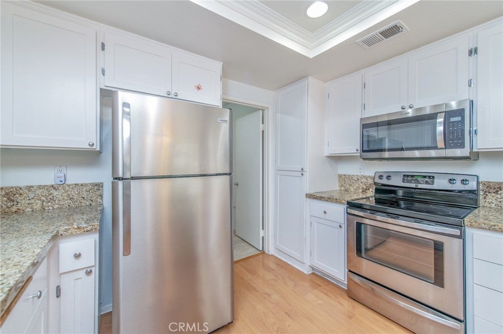 Beautifully renovated 2-bedroom, 2.5-bath townhouse conveniently located within walking distance to UCI, and University Town Center shopping. Public pool, tennis and basketball court, and 3 parks are in 3 minutes walking distance. First floor living room and kitchen, attached one-car garage and 1 carport, and 1 overnight parking permits. Second floor has 2 bedrooms each with its own full bath. All bathrooms and kitchen have been redone. Kitchen features refinished cabinets, granite countertop, high-efficiency washer and dryer, WiFi-enabled smart thermostat, and smart garage door opener.
