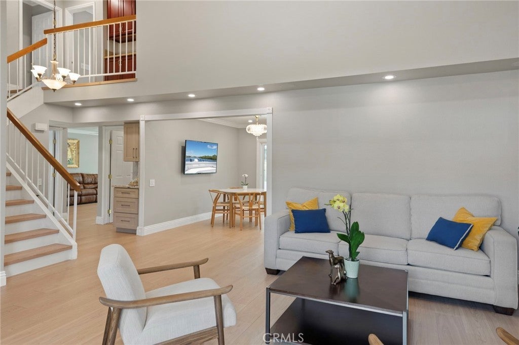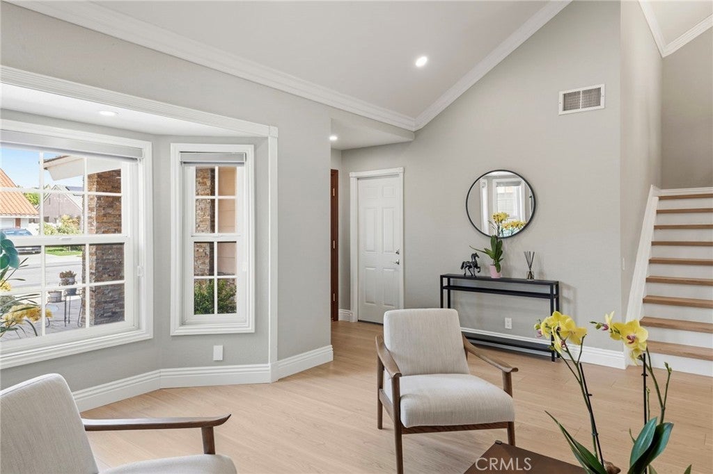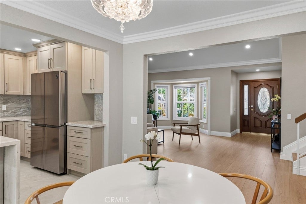 Welcome to this beautifully upgraded 4-bedroom, 3-bathroom home offering nearly 2,400 square feet of living space, including a spacious sunroom addition. From the moment you arrive, you’ll notice the exceptional curb appeal featuring custom pavers, stacked stone accents, and a striking front yard water feature. Inside, the home boasts luxury vinyl flooring upstairs, engineered wood floors downstairs with digital printed melamine on top for protection, newer vinyl windows, recessed lighting, and updated baseboards. The stunning kitchen is a true centerpiece, showcasing quartzite countertops and backsplash, a dramatic waterfall-edge peninsula, stainless steel appliances, and a charming farmhouse sink. Enjoy multiple living spaces, including a separate family room, plus the convenience of a main-floor bedroom and a fully remodeled bathroom with a large walk-in shower. Upstairs, the primary suite impresses with vaulted ceilings and a beautifully upgraded bathroom featuring a spacious walk-in shower with multiple shower heads. Secondary bathrooms have also been tastefully remodeled. What's Special: New water heater, PAID FOR Solar, Tesla charger in garage repiped throughout, and water softener. This move-in-ready home truly offers exceptional value—don’t miss your opportunity to see it! As an added bonus, the property includes membership to the Lake Forest Beach & Tennis Club. Residents enjoy access to a Jr. Olympic swimming pool, additional pool areas, a beach lagoon, tennis and pickleball courts, basketball courts, sand volleyball, a fitness center, and a variety of recreational and social amenities.