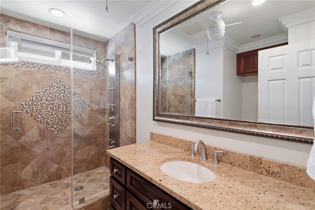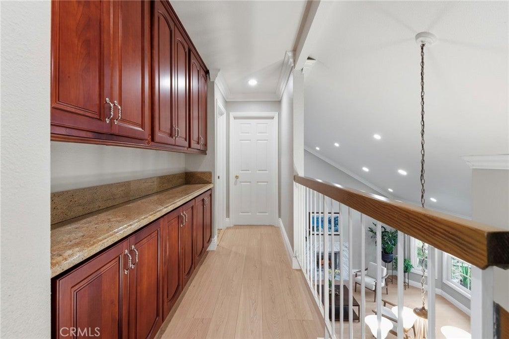 - Interior FeaturesBreakfast Area, Ceiling Fan(s), Crown Molding, High Ceilings, Quartz Counters, Stone Counters, Recessed Lighting, Bedroom on Main Level