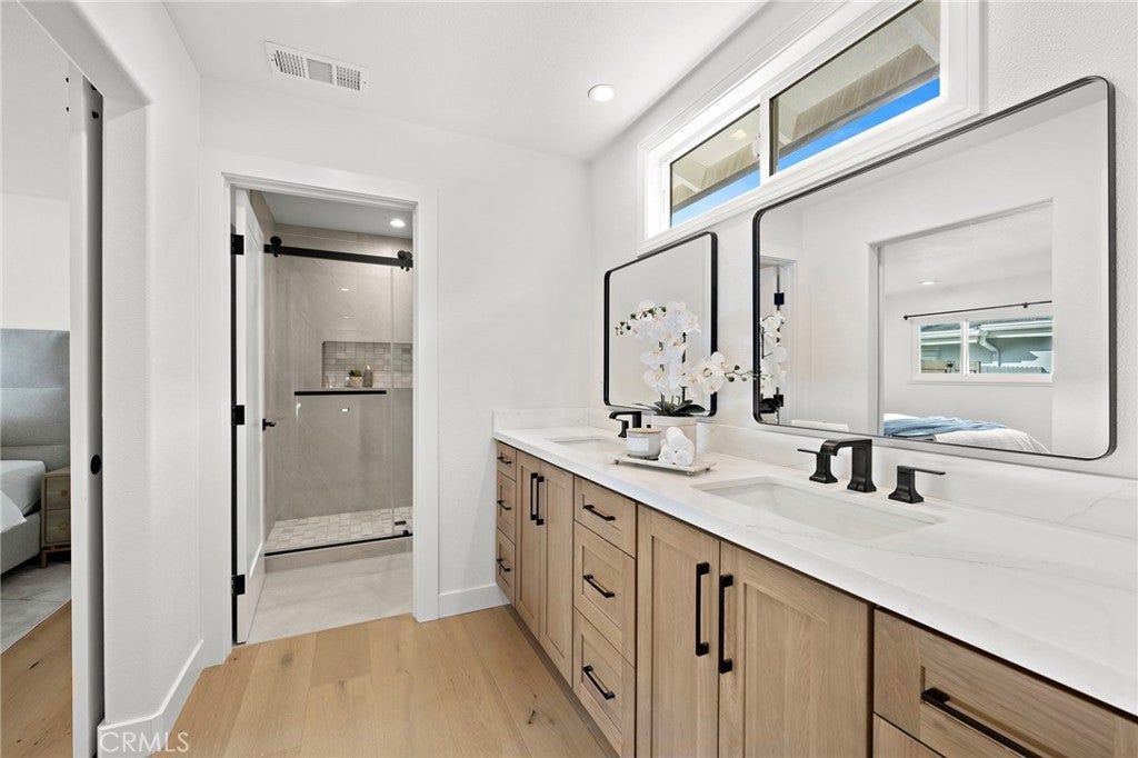 Nestled on a cul-de-sac in the sought-after South of Hamilton community on the Huntington / Newport beach border, this turnkey single-level home offers 4 bedrooms, 2 bathrooms, and 1,657 square feet of thoughtfully appointed living space on a generous 6,000 square foot lot. From the moment you arrive, a welcoming curb appeal sets the tone for what awaits inside. Step through the door to a light and bright interior featuring rich hardwood floors, recessed lighting, and dual pane vinyl windows that flood the home with natural light. The renovated kitchen showcases quartz countertops, shaker style cabinetry and stainless steel appliances, while both bathrooms have been tastefully updated with on-trend finishes. A paid-off solar system and central air conditioning ensure year-round comfort and long-term savings. Outside, your private backyard retreat awaits. A gazebo anchors the outdoor living space, while low-maintenance turf and mature landscaping provide both beauty and privacy. A finished shed offers flexible space for a home gym, office, or studio, and the finished garage adds even more versatility to this already well-appointed home. Location defines this special pocket of Southeast Huntington Beach. Walk to the sand, enjoy proximity to top-rated Eader Elementary and Edison High School, and explore the best of Newport Beach and Costa Mesa's renowned dining and shopping scenes, all just minutes from your door. South of Hamilton is one of Coastal Orange County's best kept secrets.