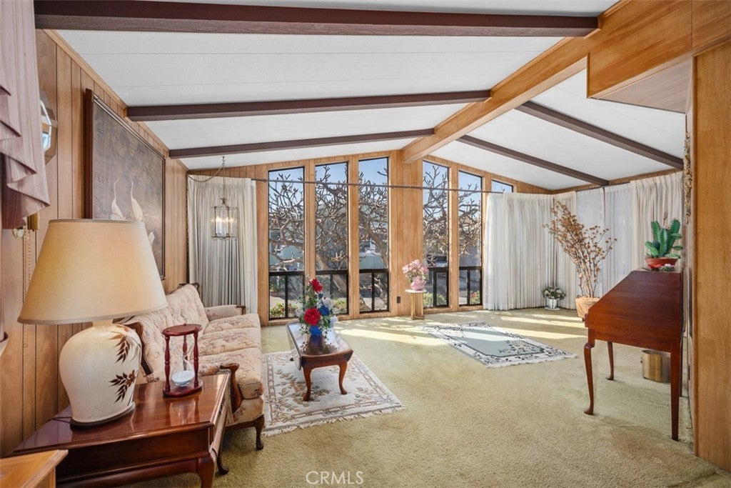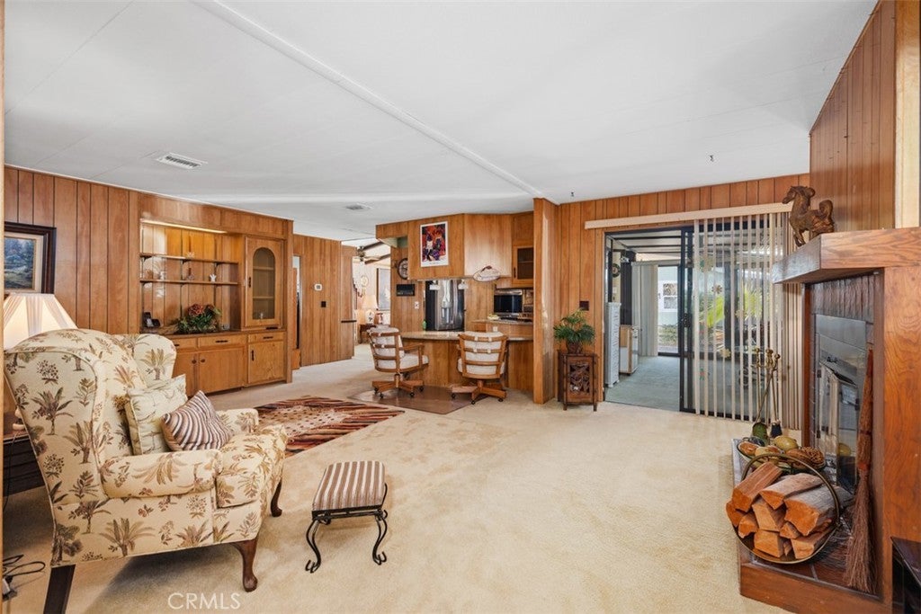 Coastal breezes welcome you to this home in the Skandia Mobile Homes Park. This is an active 55+ community with amenities galore and just a few short miles to the beach. This spacious home is a rarity, with a HUGE living area and remodeled kitchen which adjoins onto the Family Room/ second Living area, complete with fireplace and bar, so perfect for entertaining! There is also a completely covered and sunny patio room which adds to the spaciousness of this home. Inside laundry Room at carport entrance complete with washing basin, ample counter space and utility closet. Newer high-end washer and dryer can be also included with sale. Large Primary Bedroom Suite has large walk-in closet complete with organizers. En-Suite Bathroom boasts dual sinks, "Safe-Step"walk-in Tub, separate shower, custom wooden shutters and plenty of cabinetry storage. Secondary Bedroom is bright with ceiling fan and large closet. Customized kitchen with granite countertops, Stainless appliances, Double Ovens, and a Kitchen island with casters that will be included with sale. Motorized window coverings for those who may want separation from adjoining patio room. Large pantry with ample storage. Kitchen also has decorative ceiling fan and artistic lamp sconce. Carport with 3 sheds, one is complete with electricity and workbench. Though one may rarely use, this home has Central air conditioning. Another special feature is a reverse osmosis water system. "Country Club" amenities include Pool, spa, and a huge clubhouse with full kitchen - perfect for parties and large family gatherings. There is also a billiards room,, TV and Library Room. There is also on-site RV storage. Only 1.3 miles to Huntington Harbor, minutes to the shoreline , Bolsa Chica Wetlands and many restaurants and shopping opportunities. This is truly Orange County Coastal Living at an affordable price.