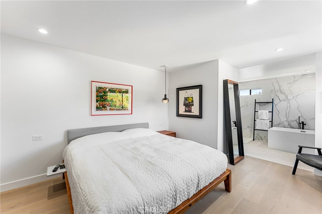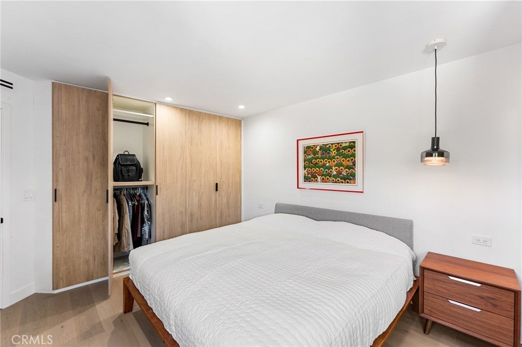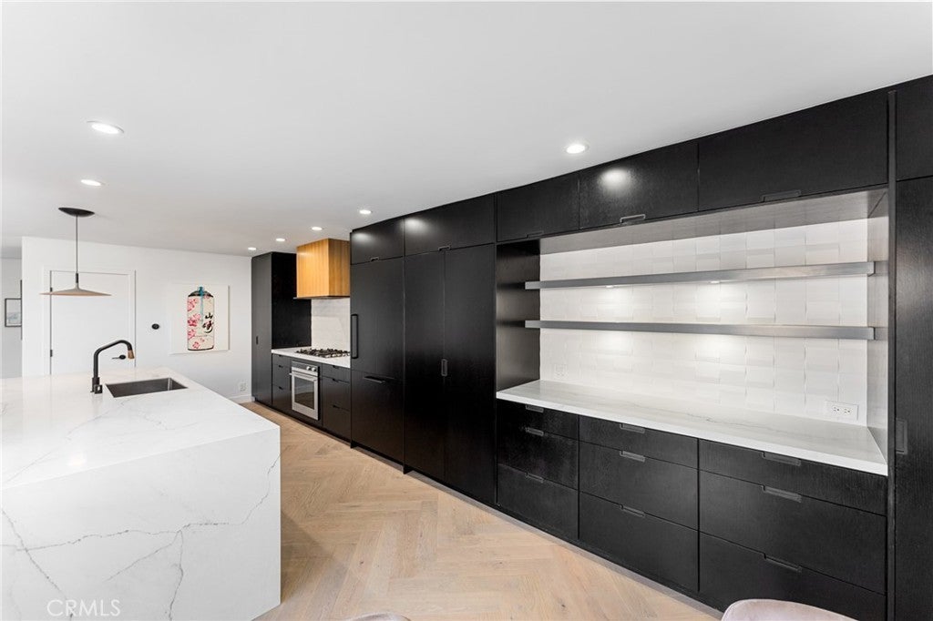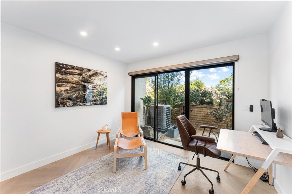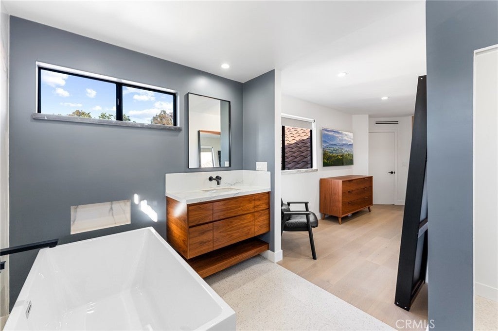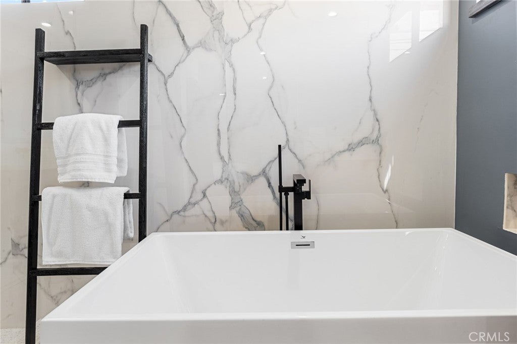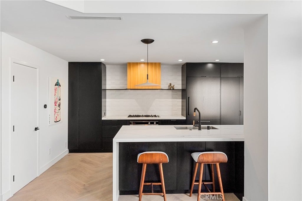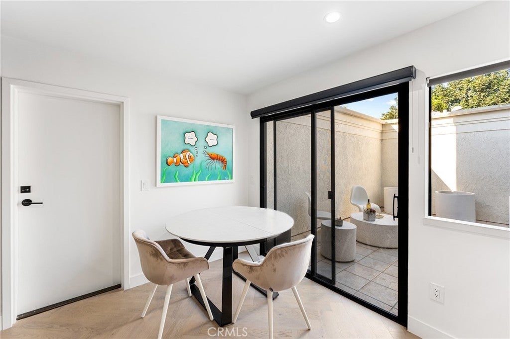 Fully Remodeled Rancho San Joaquin Modern Townhome allows you to step into unparalleled sophistication with this meticulously remodeled 3-bedroom, 2.5-bathroom townhome, completed in 2022. With bespoke modern architectural design and luxury finishes, this home redefines contemporary living. The heart of the home features designer kitchen complete with custom millwork of hand selected oak veneer cabinetry, large panoramic porcelain-covered island with stunning waterfall edges, a convenient breakfast counter, and appliances from Fisher Paykel and Bertazzoni. This space seamlessly flows into the great room, adorned with a massive gas fireplace encased in slab porcelain. Enjoy the expansive living with a great room, which opens to a large private outdoor courtyard – perfect for entertaining or relaxing in privacy. The herringbone wood flooring extends throughout the main level, enhancing the modern aesthetic. A versatile guest bedroom or office features sliding glass doors that open to a private front courtyard. The upper level boasts a custom glass and metal staircase leading to an incredible master suite and a third bedroom, each with its own private bath. The master bath is a true gem, featuring floor-to-ceiling slab porcelain walls, a standalone tub, real walnut vanities, and walk-in shower with rainhead and shower wand. The upstairs guest bath also includes a walk-in shower with a floor-to-ceiling tile surround. Luxury touches abound throughout the home, including a level 5 drywall finish, light and bright ambiance, built in shelving with undermount led lighting, coffee bar, cabinet pull outs, designer chandelier in stairwell, thoughtfully designed quartz ledges on all windowsills, and electric blinds. For your furry companions, the laundry area includes a large DOG WASH station! This is one of the rare units in the complex offers direct access to a fully finished two-car garage, complete with floor coating, a 220V outlet for electric vehicles and built-in shelves. New A/C unit placed in January 2025! Furnishings negotiable at close of escrow. The craftsmanship of this remodel was masterfully completed by One Contracting and Remodeling LLC with custom millwork cabinetry by CabinetsOC.