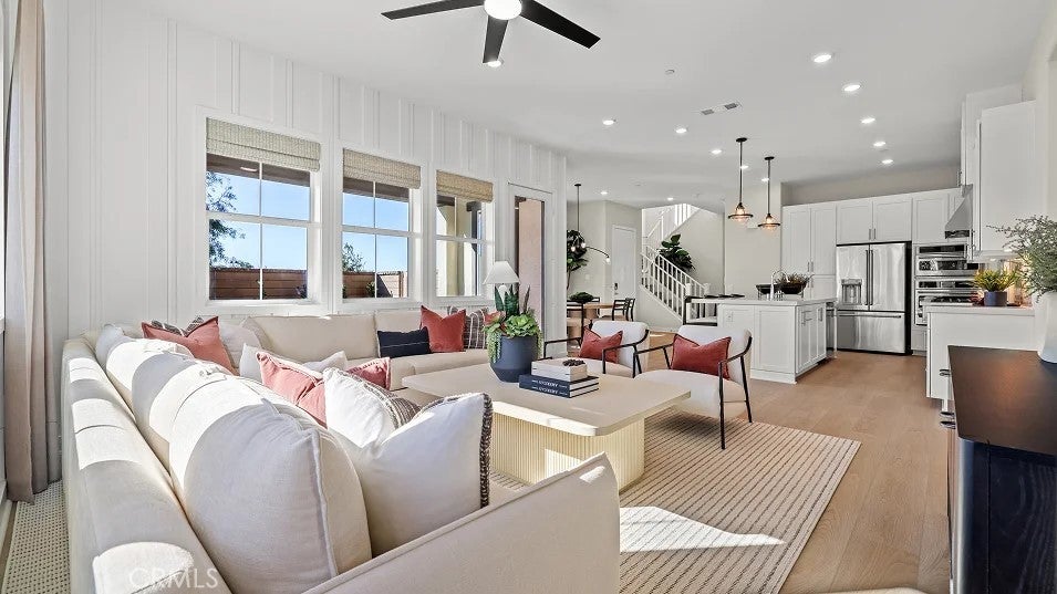 Be the first to see the beautiful new Lennar Homes at Nova in the brand new Gavilian Ridge in Rancho Mission Viejo. The first floor offers a oversized great room, spacious kitchen with island a separate dining room and two bedrooms and indoor laundry room. The upstairs is an oversized loft with included beverage bar. The light bright kitchen offers white cabinets, white quartz countertops, GE Cafe Series appliances including the refrigerator. This outstanding corner location offers mountain views and opens up to a small pocket park. Brimming with Lennar's "Everything's Included" features with time for the buyer to customize their flooring and backsplash. February 2026 move-in. Part of the new Gavilian Ridge neighborhood that offers the ultimate lifestyle for those 55+.