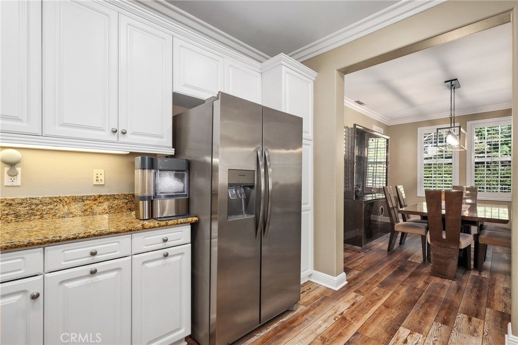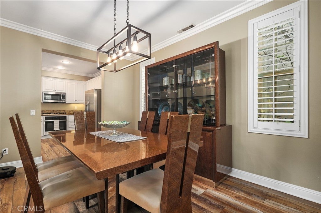 Welcome to this beautifully upgraded home in the highly desirable Arborage neighborhood of Ladera Ranch. Showcasing new flooring, laminate wood floors, and elegant crown molding, this residence offers a warm and inviting atmosphere throughout. The kitchen is thoughtfully designed with granite countertops, white cabinetry, and stainless steel appliances—perfect for everyday living and entertaining. Upstairs, the spacious primary suite features an ensuite bathroom with dual vanities, a soaking tub, and a walk-in shower. Three additional generously sized bedrooms and a full hall bathroom with dual sinks provide ample space for family and guests. This home is enhanced with valuable upgrades including paid solar, a water softener, reverse osmosis drinking water system, new turf front lawn, a new tankless water heater, and a brand new furnace with warranty. A two-car attached garage adds convenience and functionality. Enjoy outdoor living on the expansive wrap-around patio—ideal for relaxing or entertaining. Residents of Ladera Ranch enjoy award-winning schools and an abundance of resort-style amenities, including Cox high-speed internet, multiple pools and spas, parks, clubhouses, a water park, tennis and volleyball courts, summer concerts in the park, and miles of scenic walking and biking trails.